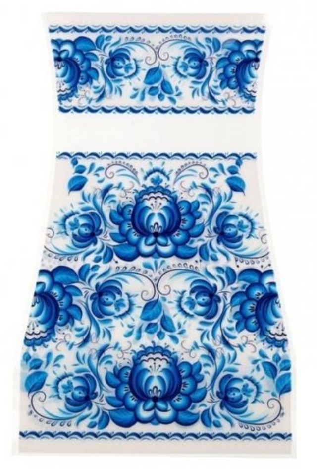 さわやかなブルーのグジェリ模様 キッチンが華やかに ジャムの種類豊富なロシアらしいキッチングッズ 美しいシールです。 +++++++++++++++++++++++++++++++ サイズ 21 cm×29.5 cm 全国一律185円 +++++++++++++++++++++++++++++++