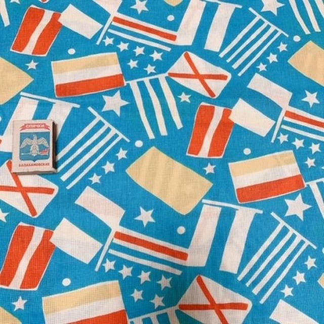 :37: 80幅cm×50cmカット 『国旗』水色系ロシアの昔の布 デッドストック ソビエトデザイン