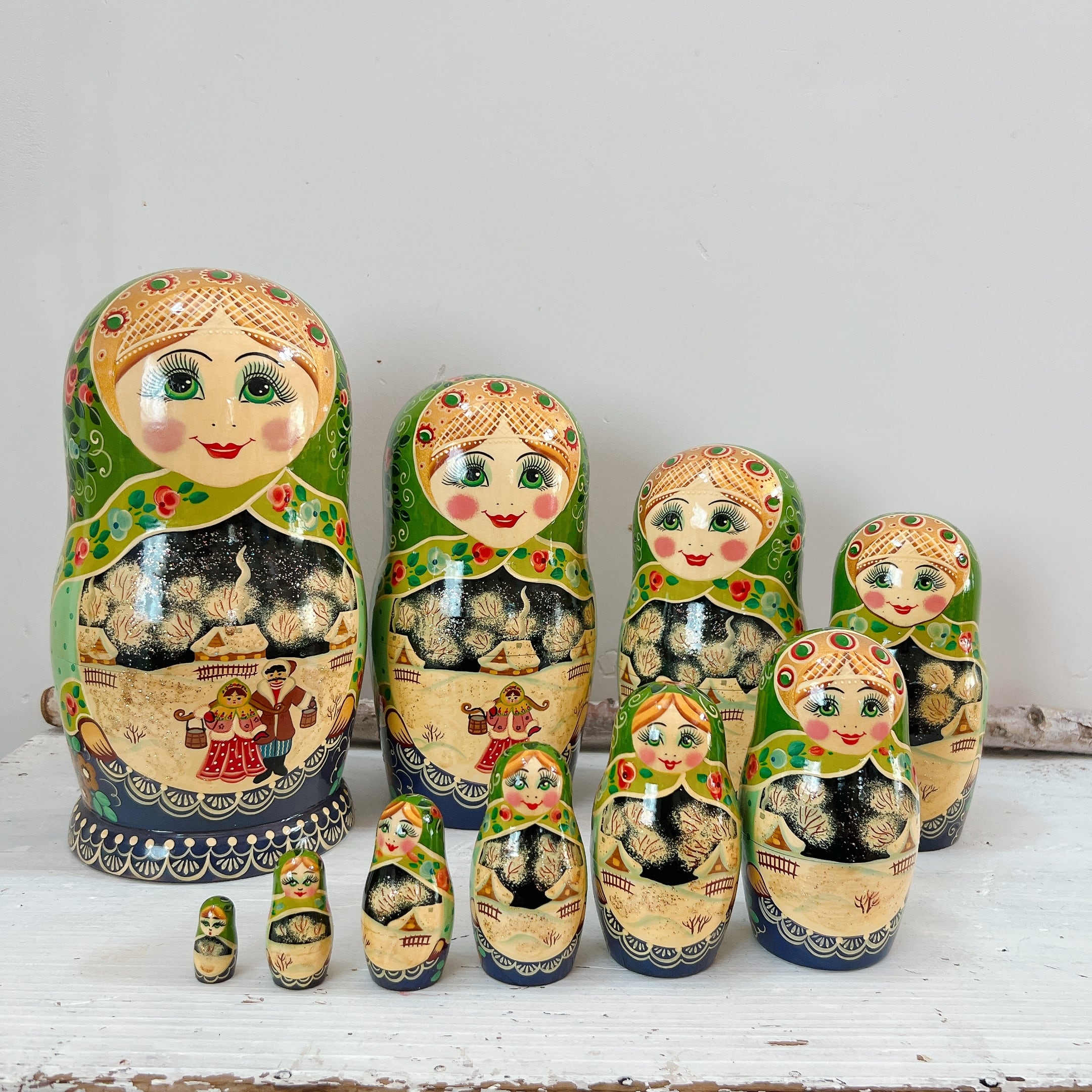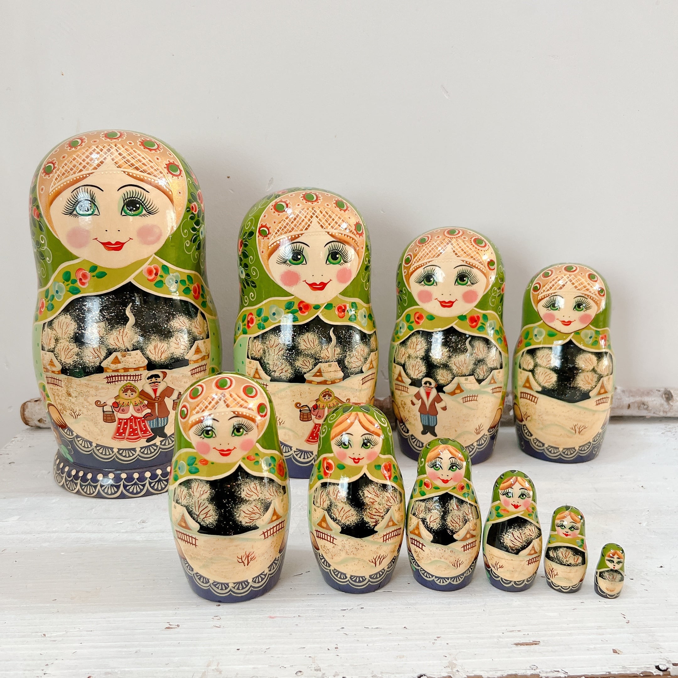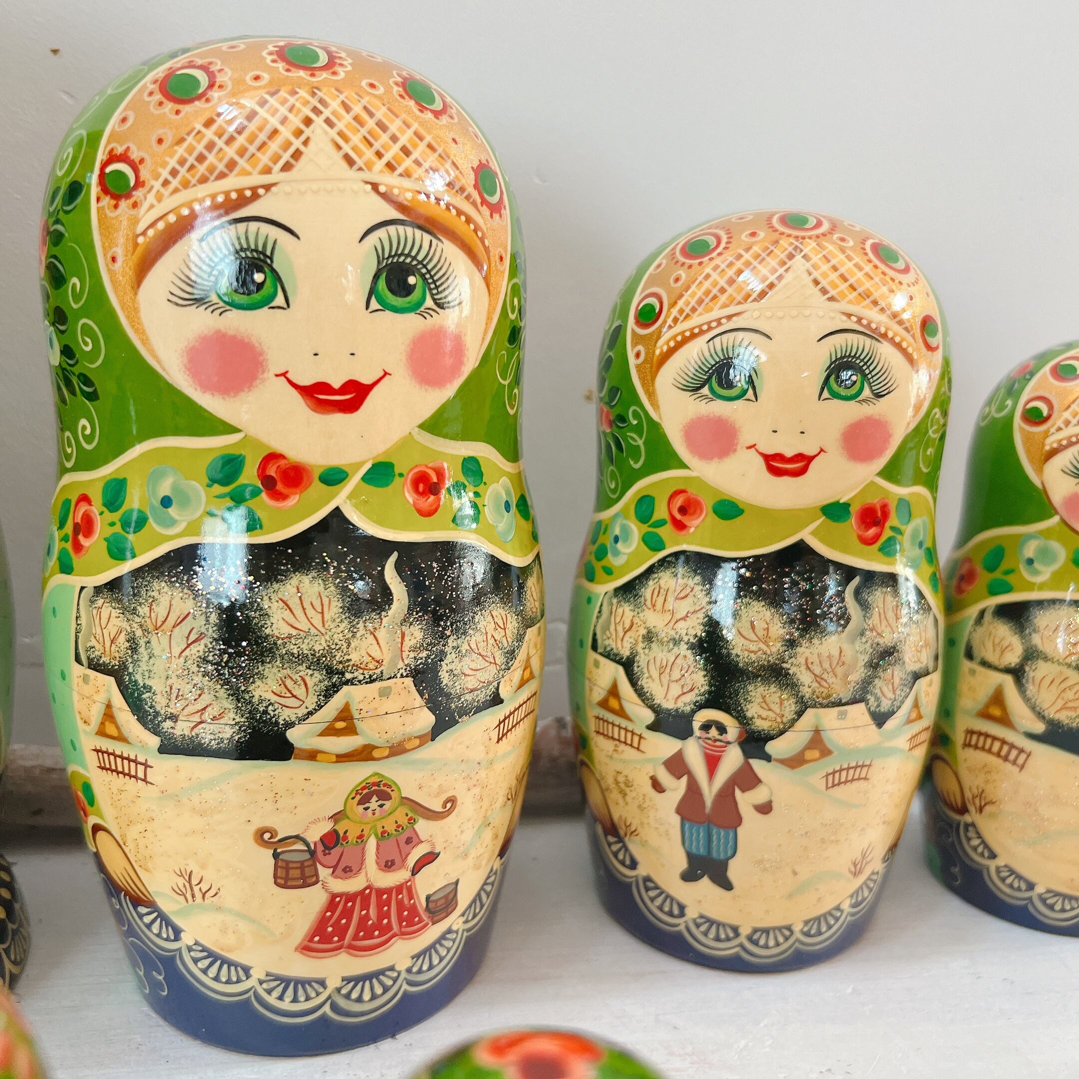 (SALE) 10P セミョーノフマトリョーシカ アーティスト「ロシアの冬」 MT243