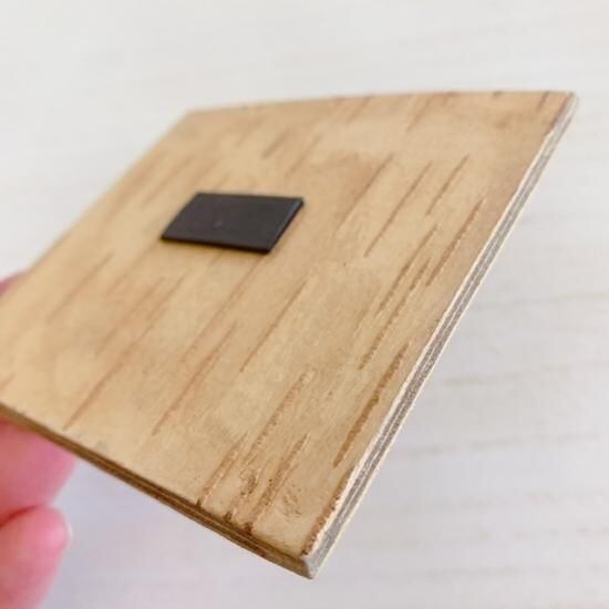 強い板の両面に白樺の皮が貼り付けられ、裏には小さなマグネットが貼られています。