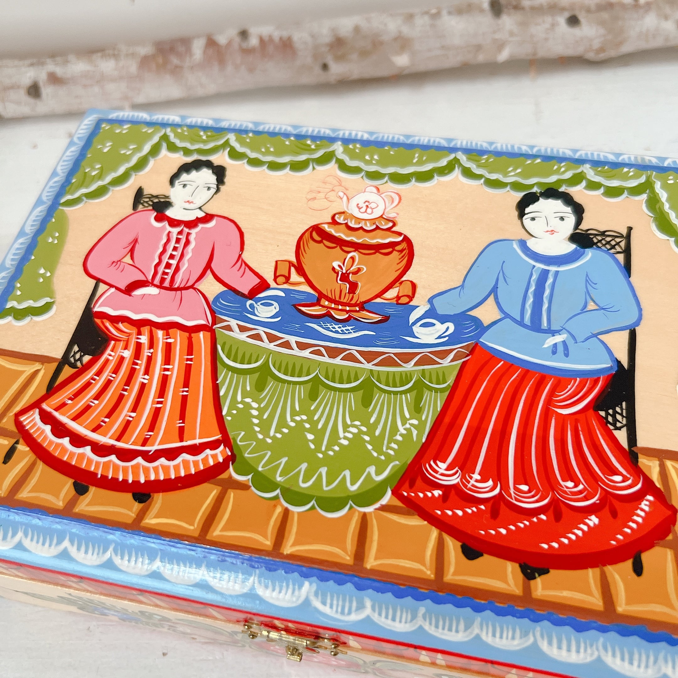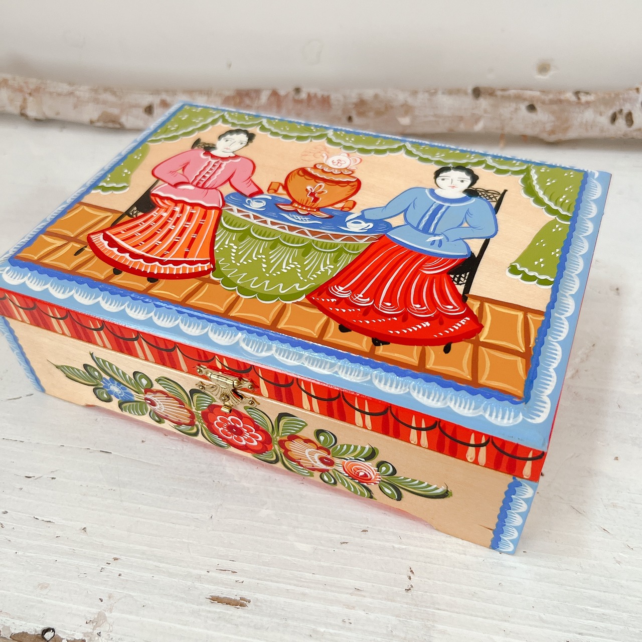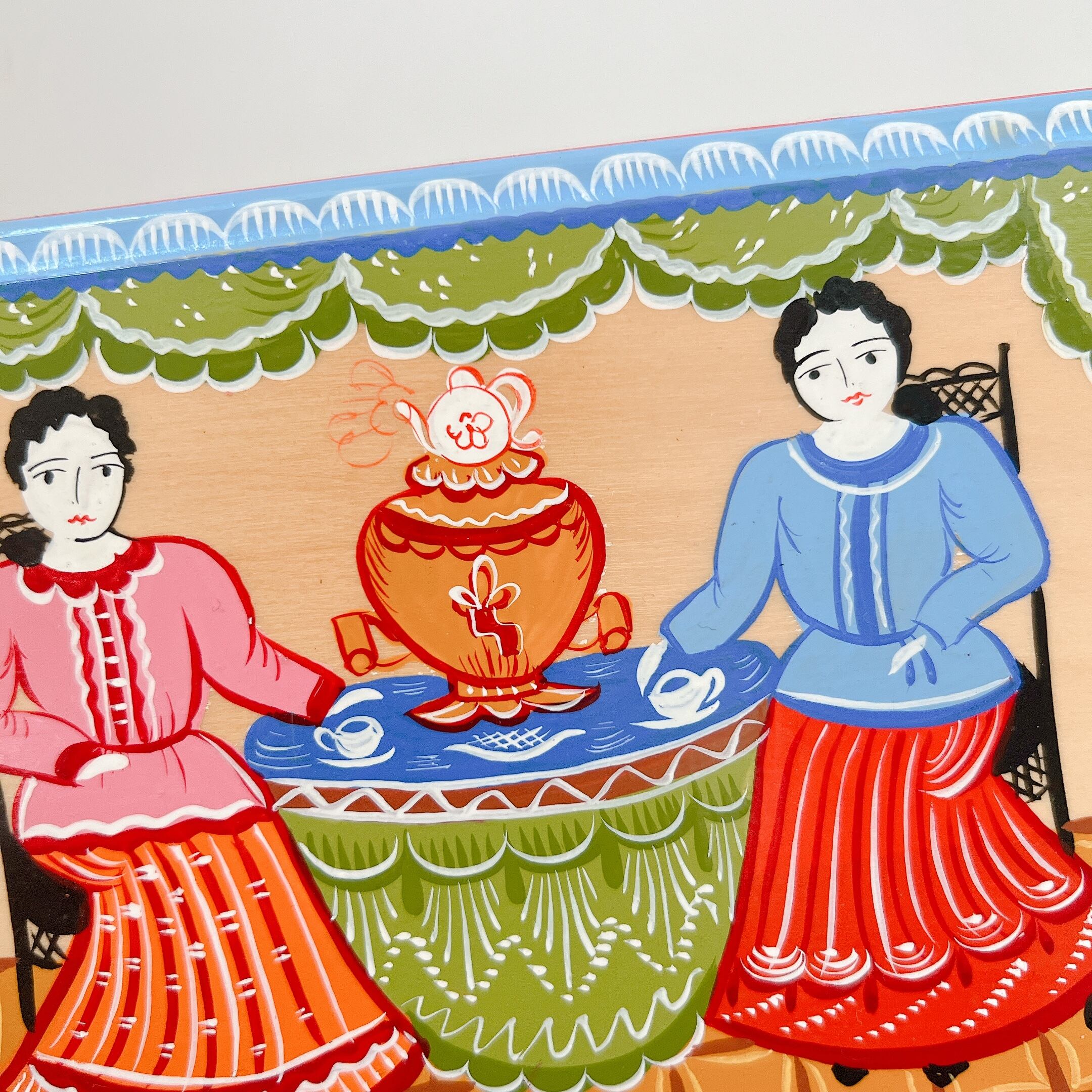 ゴロジェツ塗り 「宝石箱 ご婦人のティータイム」 14x19cm