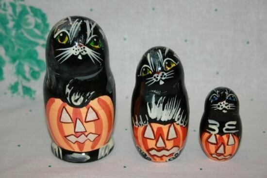 3p 動物さんマトリョーシカ ミニサイズ 「黒ねことかぼちゃ・ハロウィーン」11cm