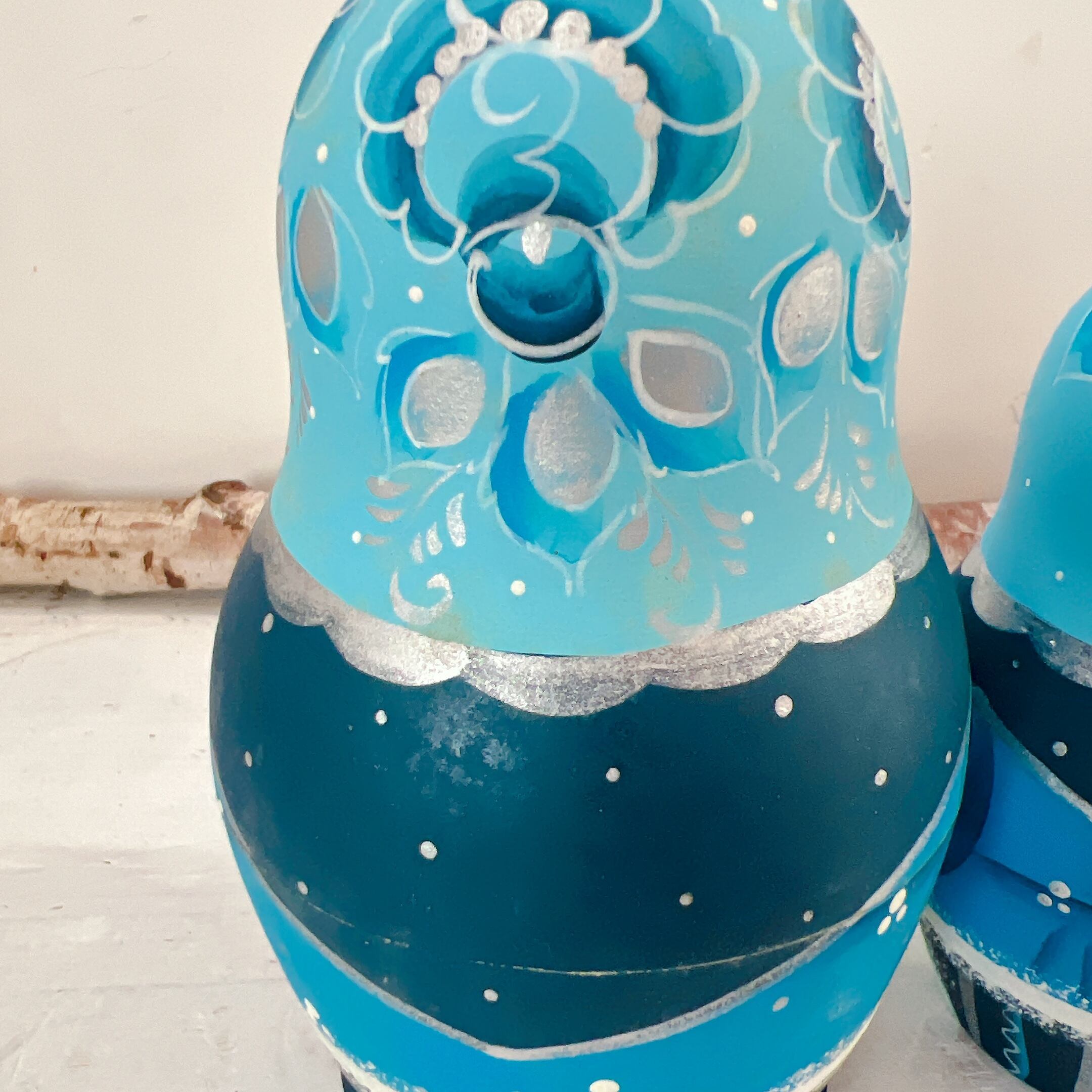 ニスを使わず仕上げられているため、さらりとした独特の手触りが楽しめるマトリョーシカ。