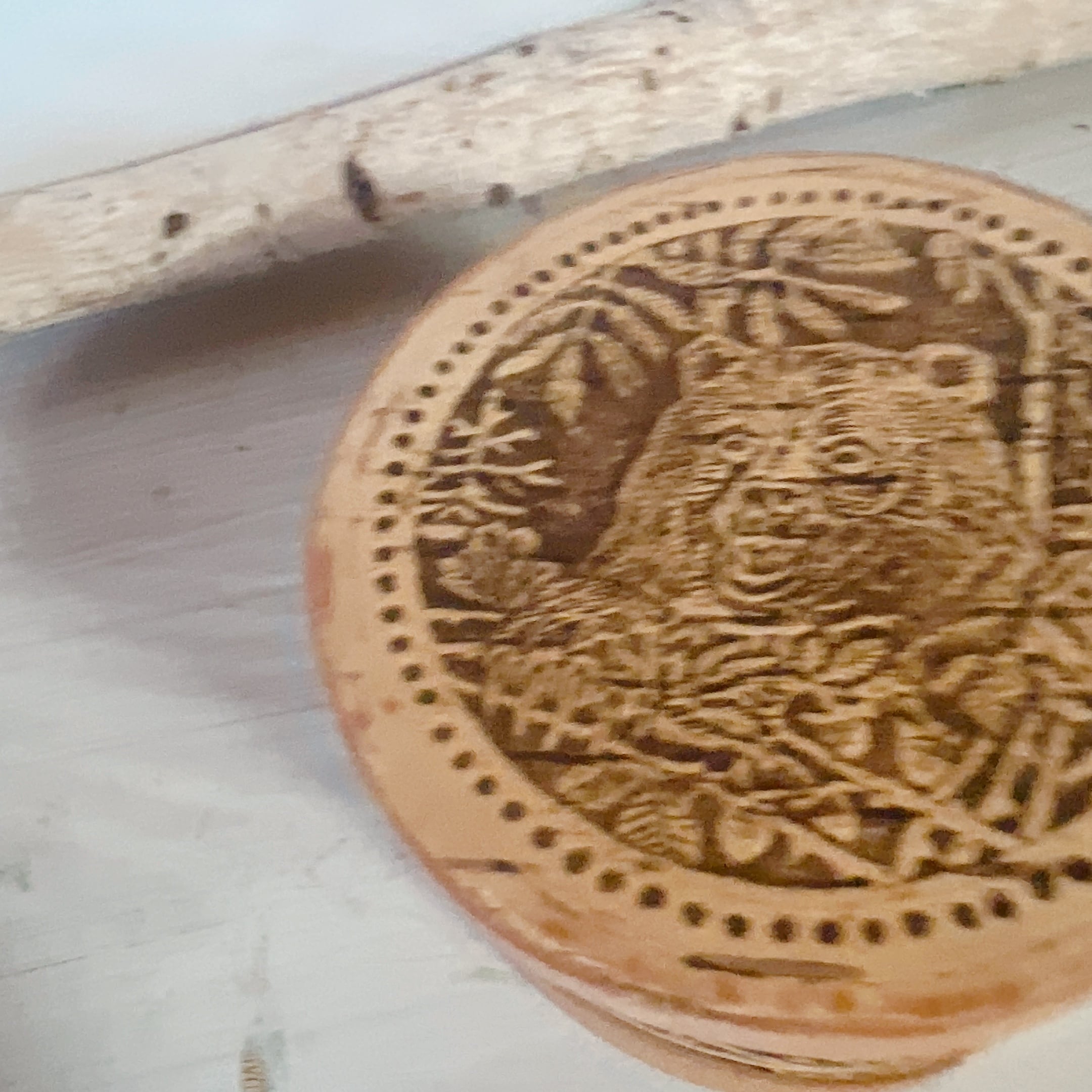 白樺工芸ベレスタ 円形「怖~いくまさん」 高さ6cm. BE070