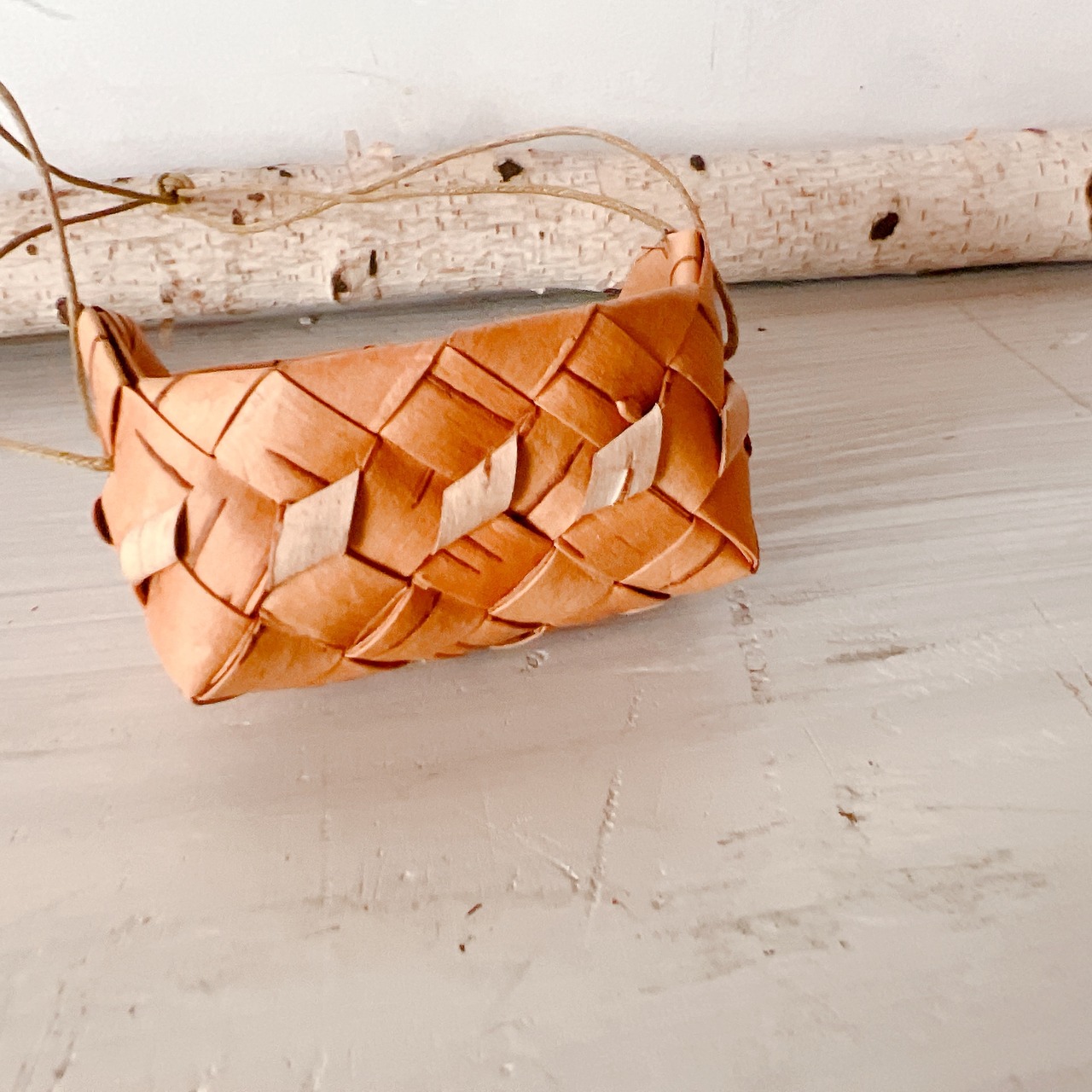 白樺の表皮をなめして、細くきった素材を、
