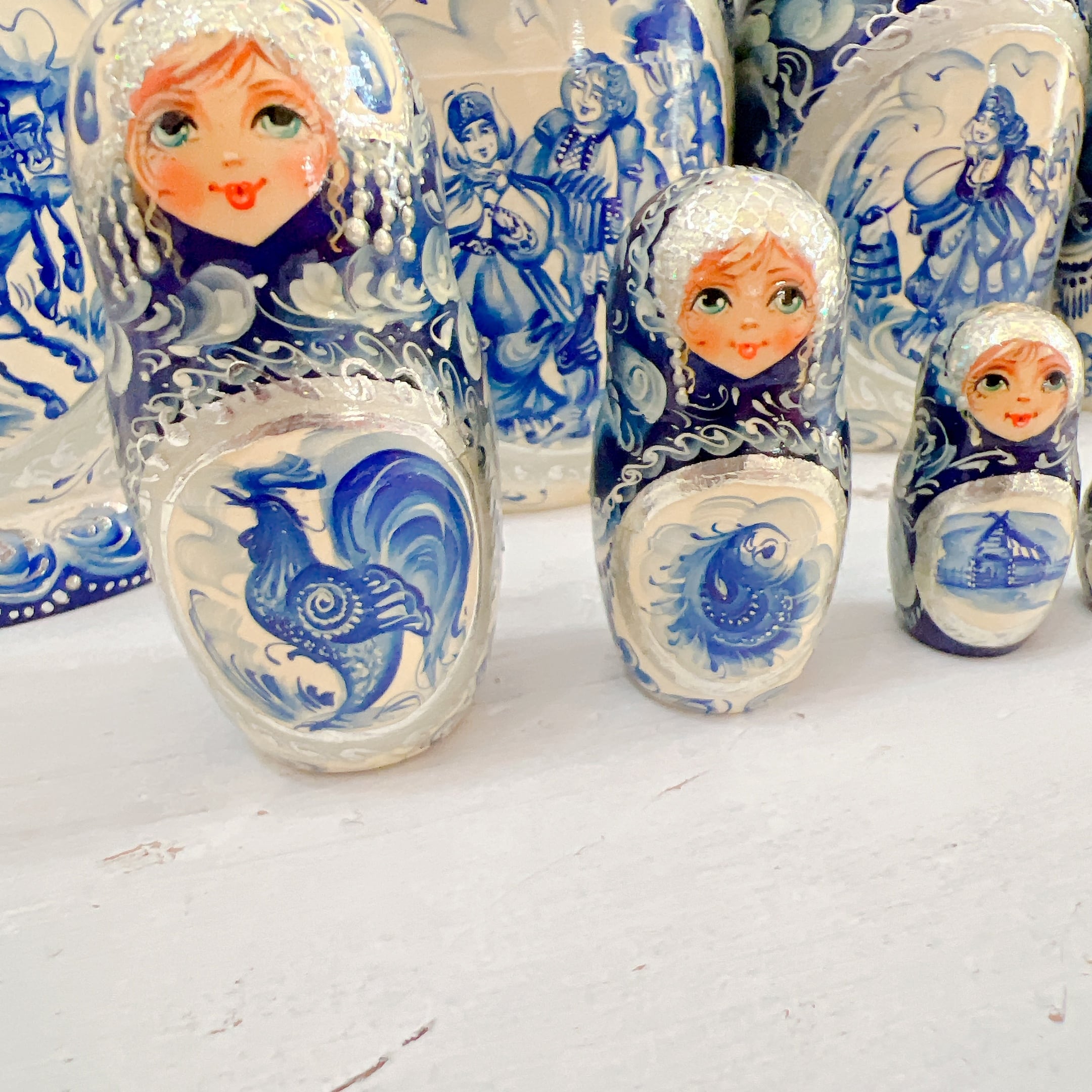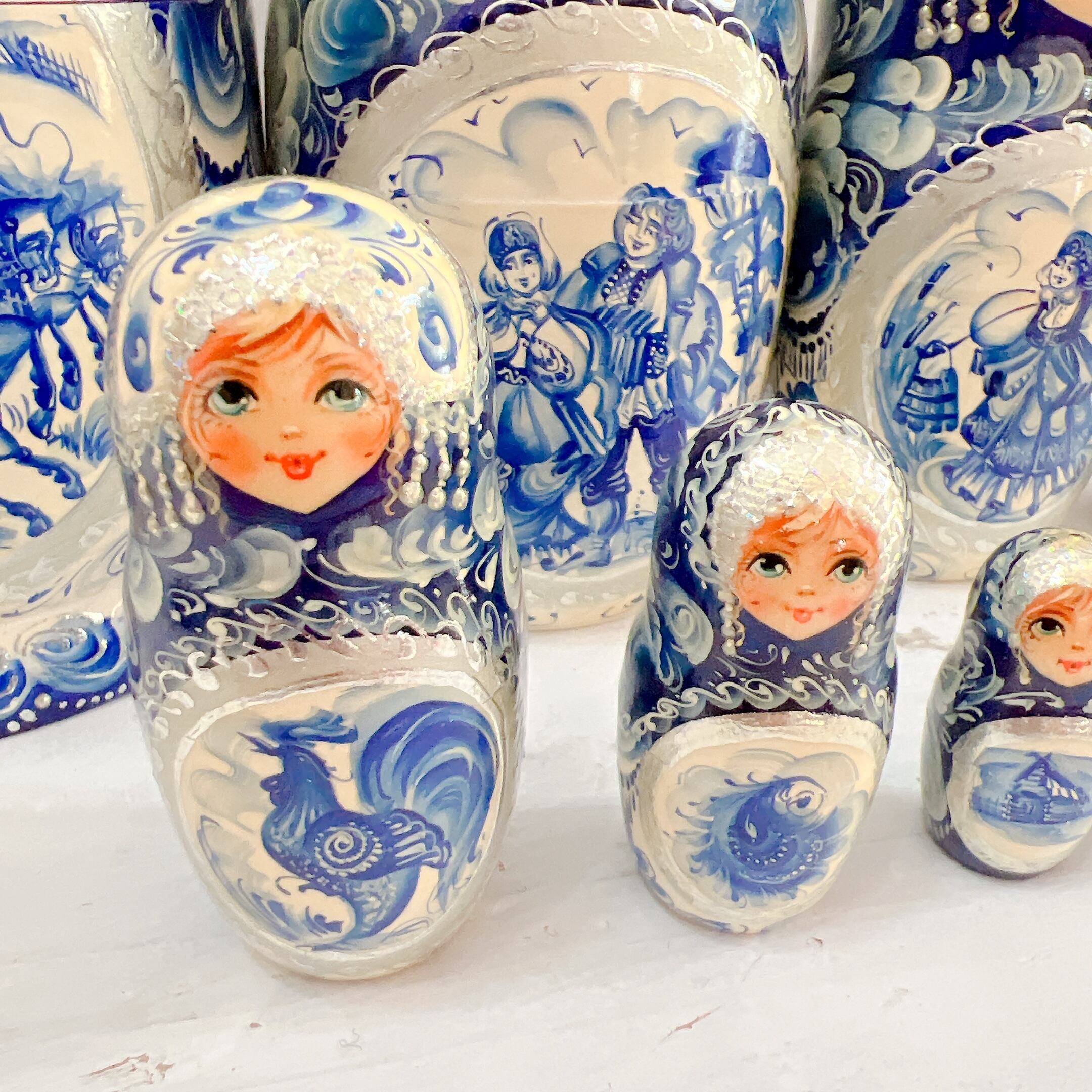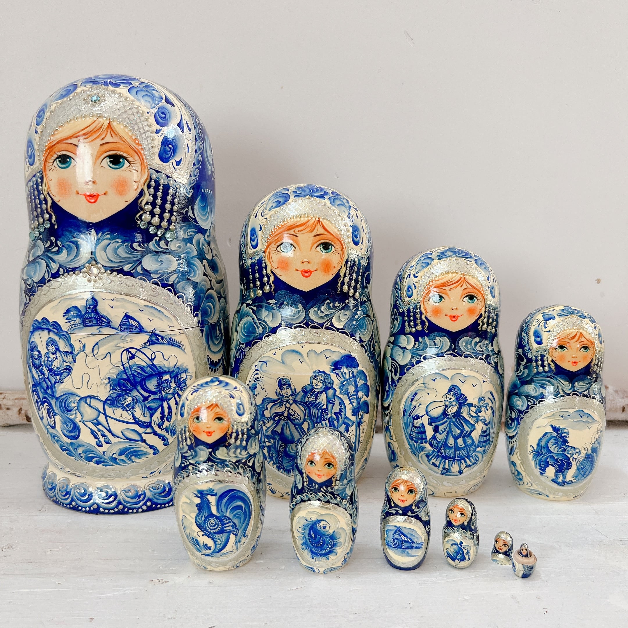 [SALE30%オフ]特大10P アンナさんのマトリョーシカ 「グジェリin シルバー・トロイカ」 26cm MT221