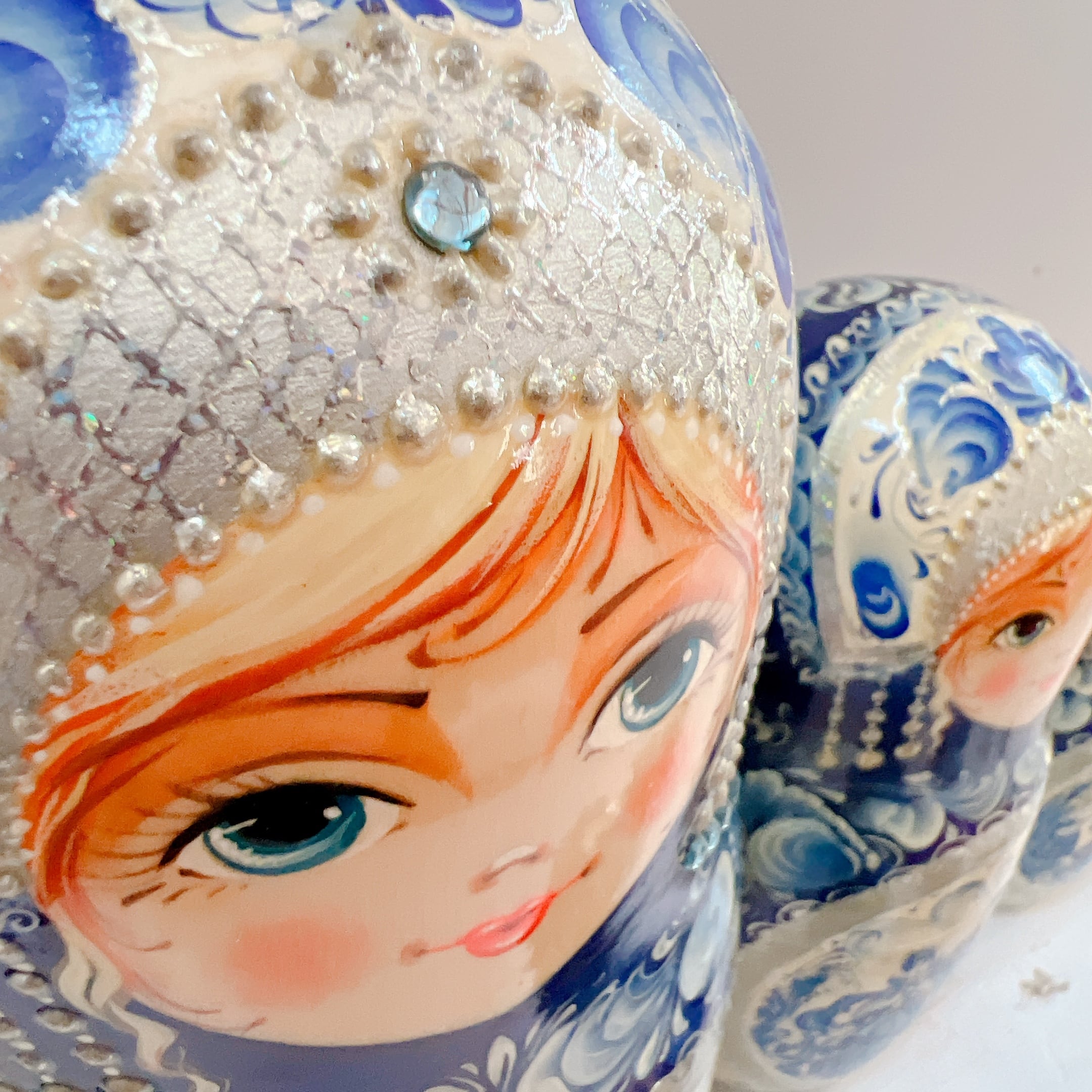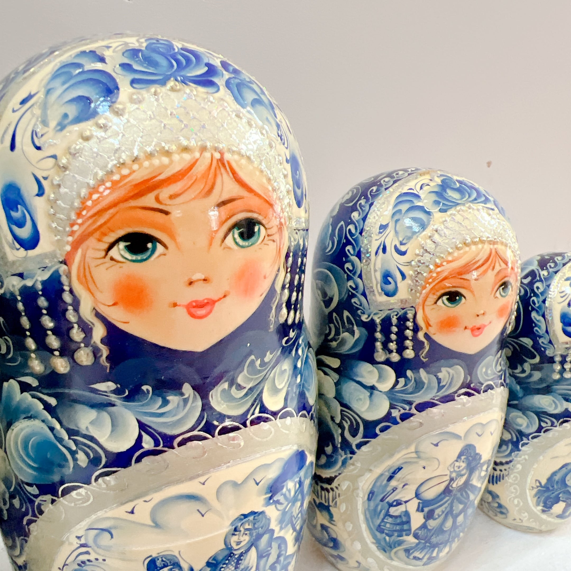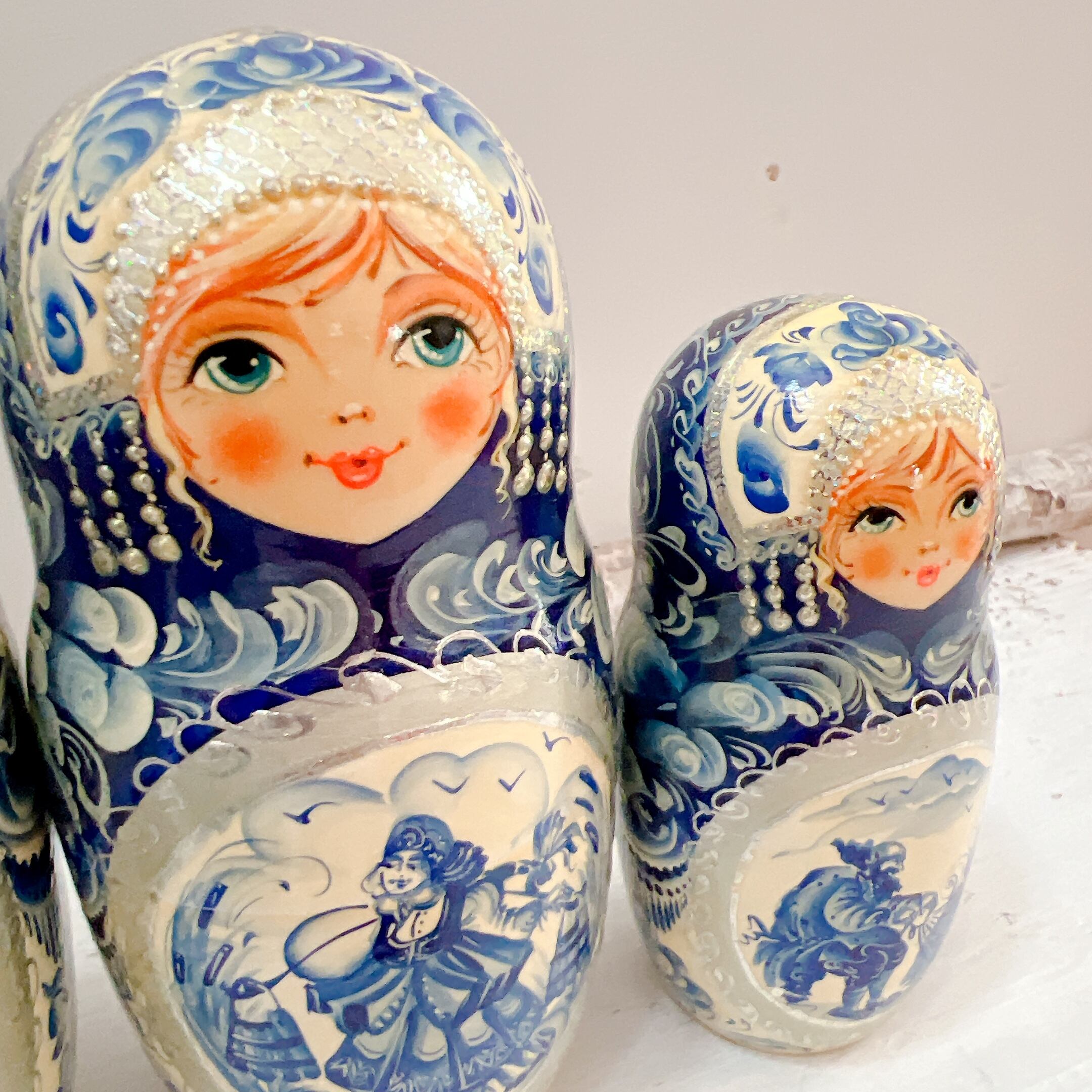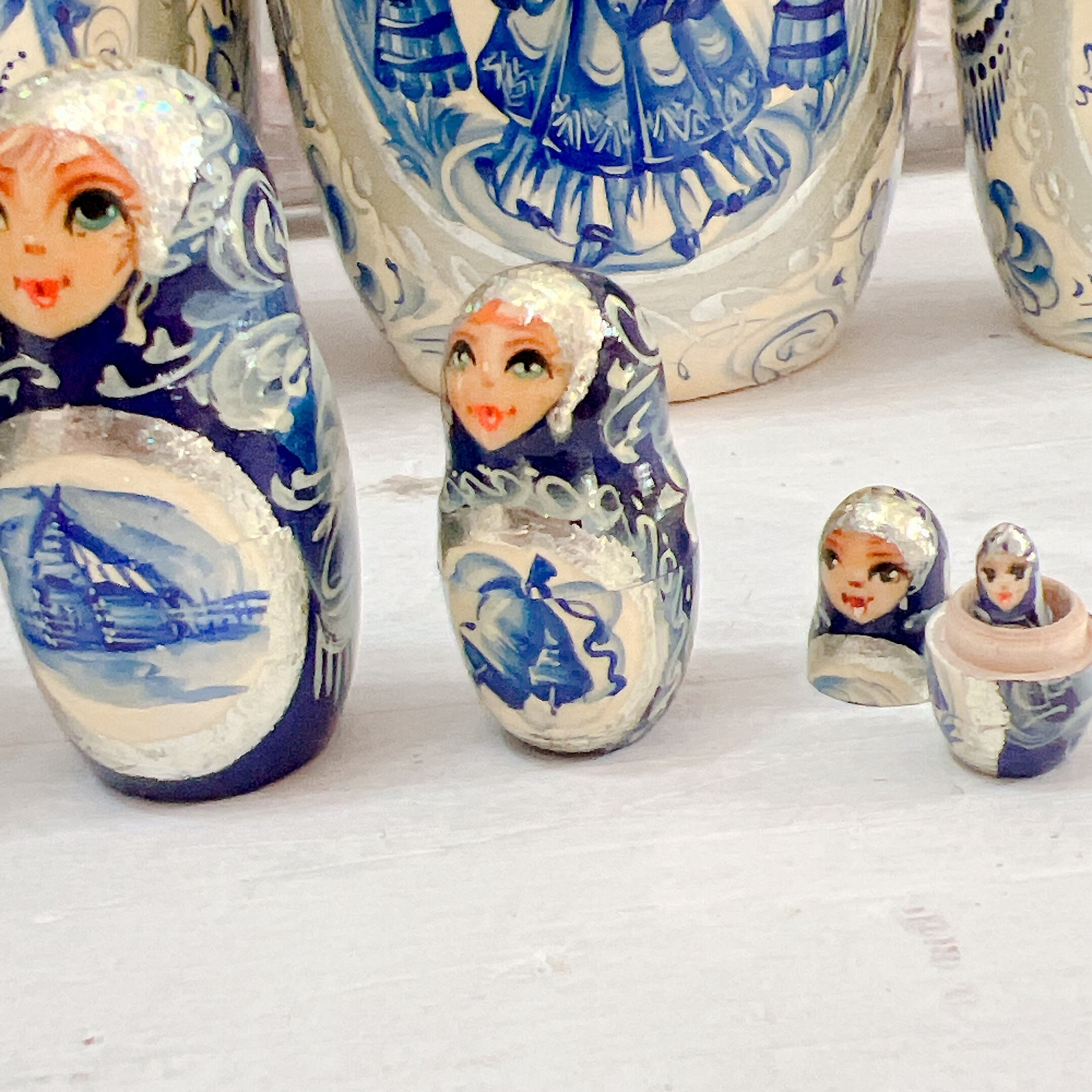 [SALE30%オフ]特大10P アンナさんのマトリョーシカ 「グジェリin シルバー・トロイカ」 26cm MT221