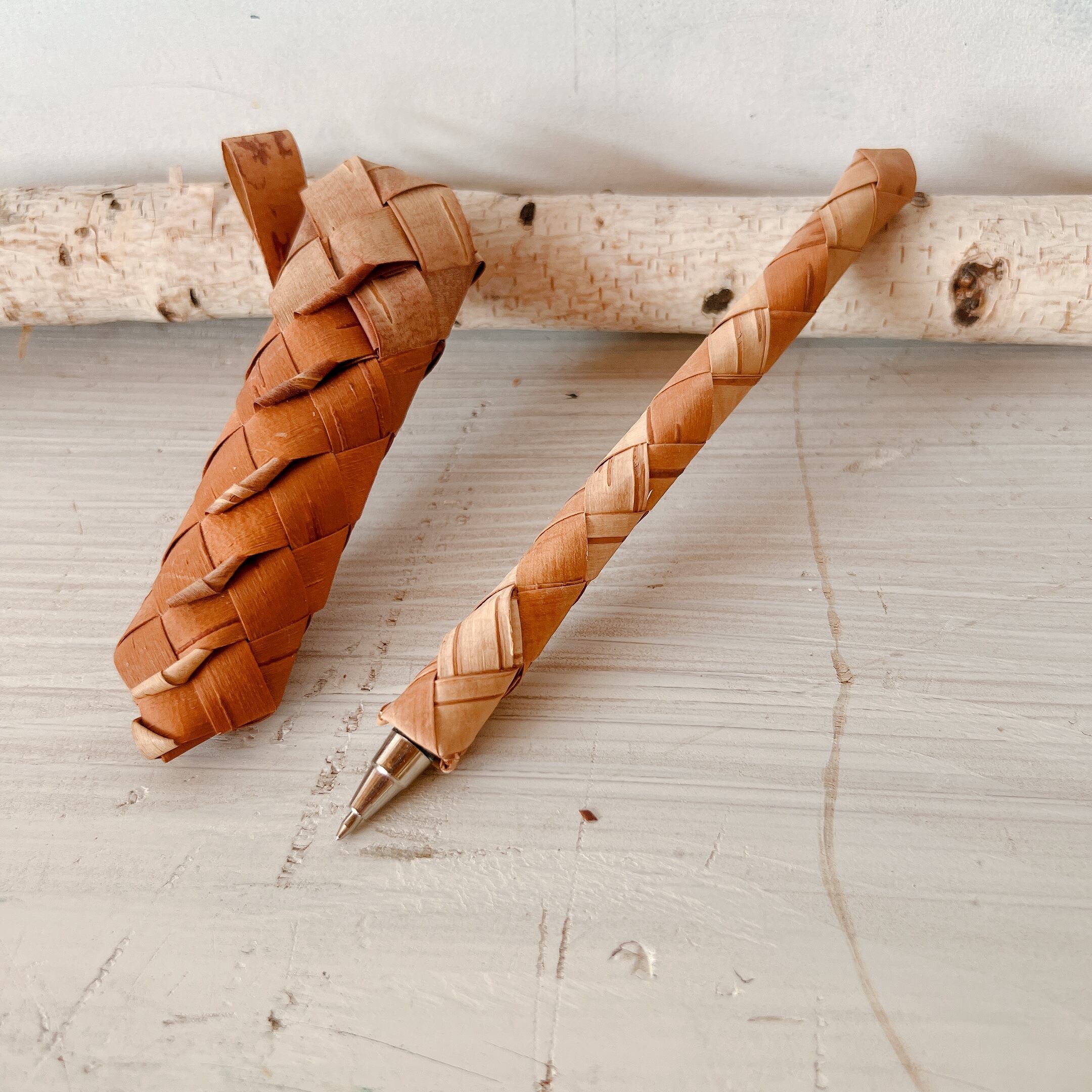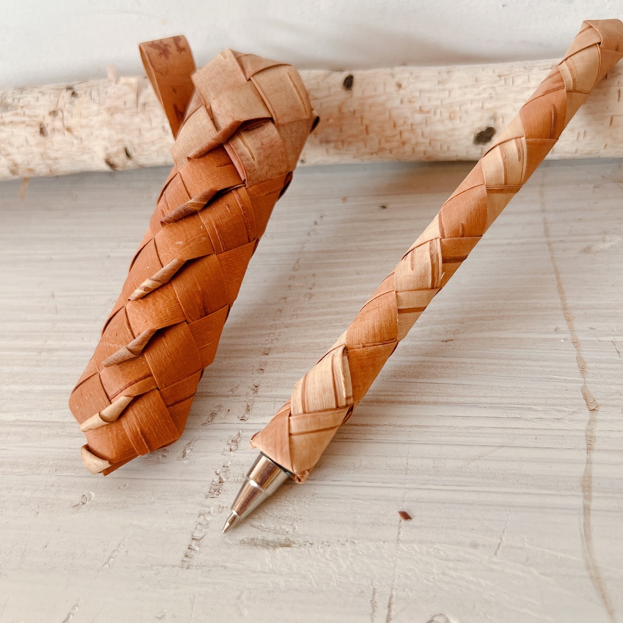 白樺細工・ベレスタ「白樺で包まれたボールペンとペン刺しのセット」 BE056
