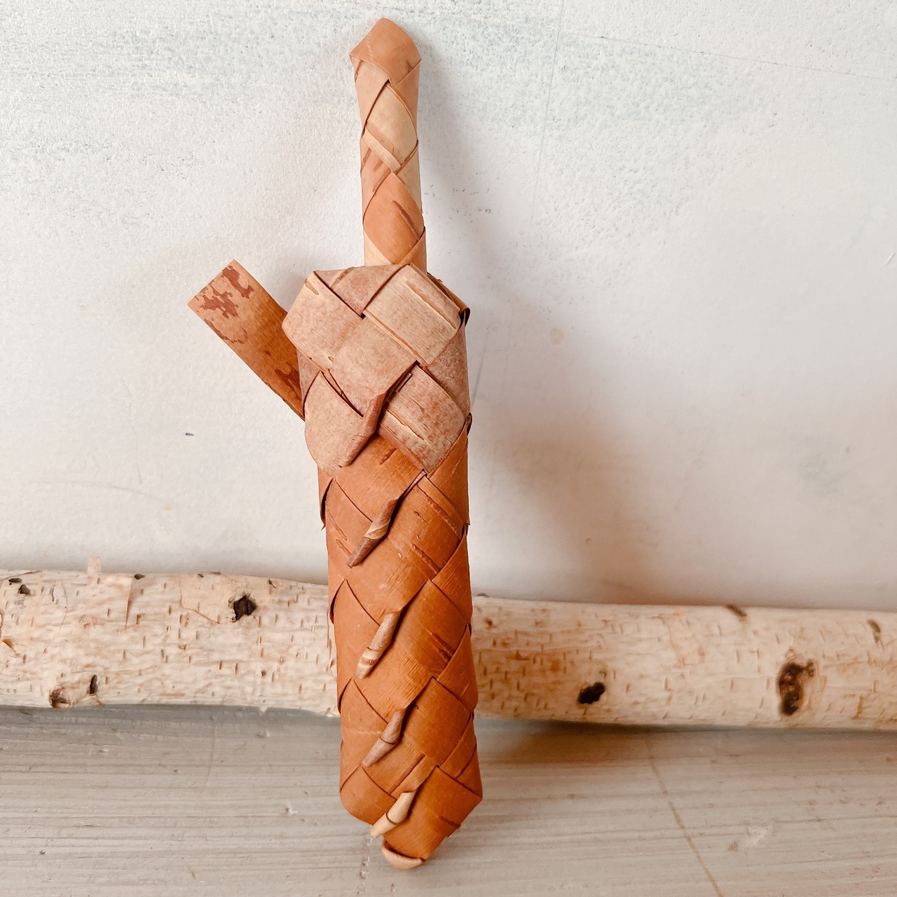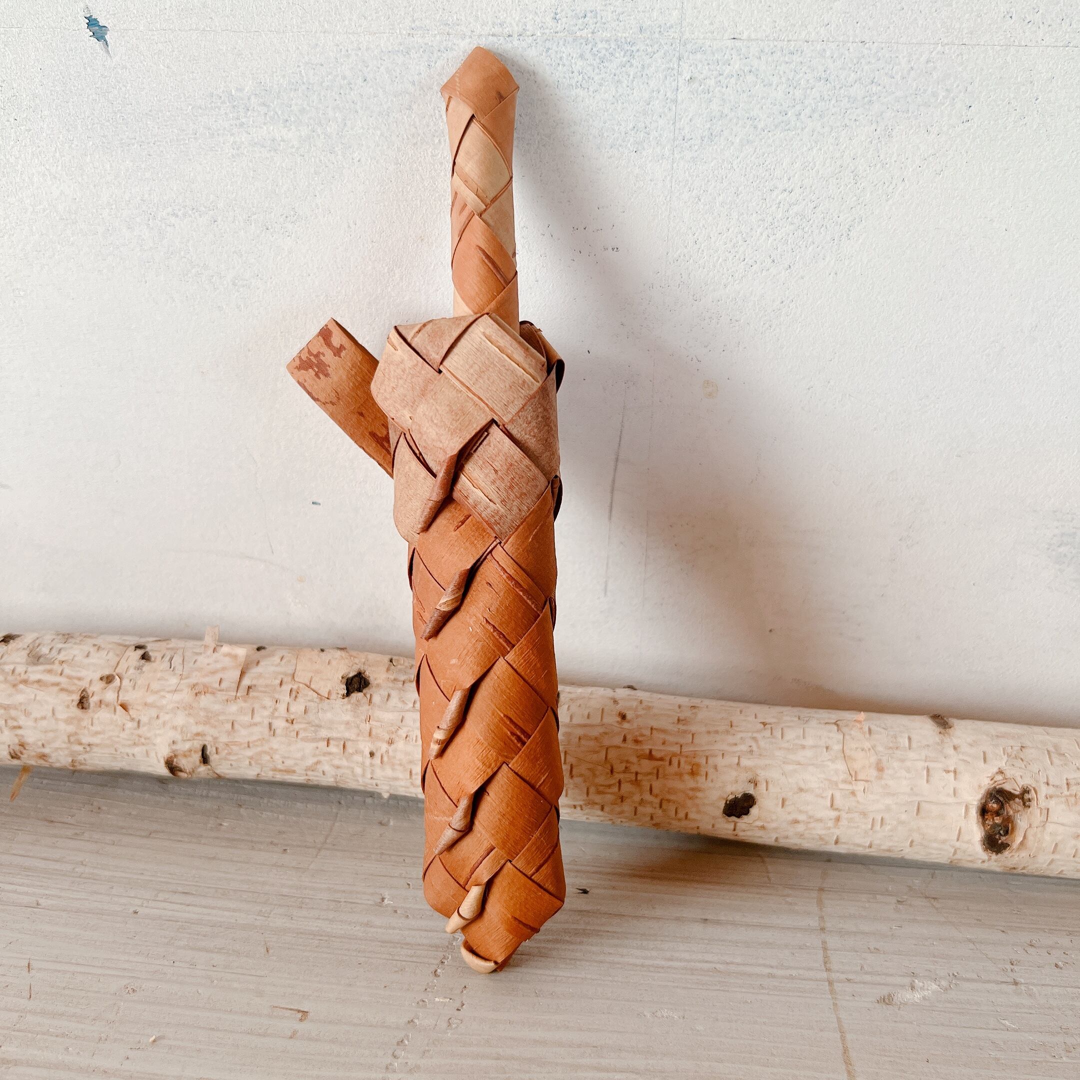 白樺の表皮をなめして、細くきった素材を、