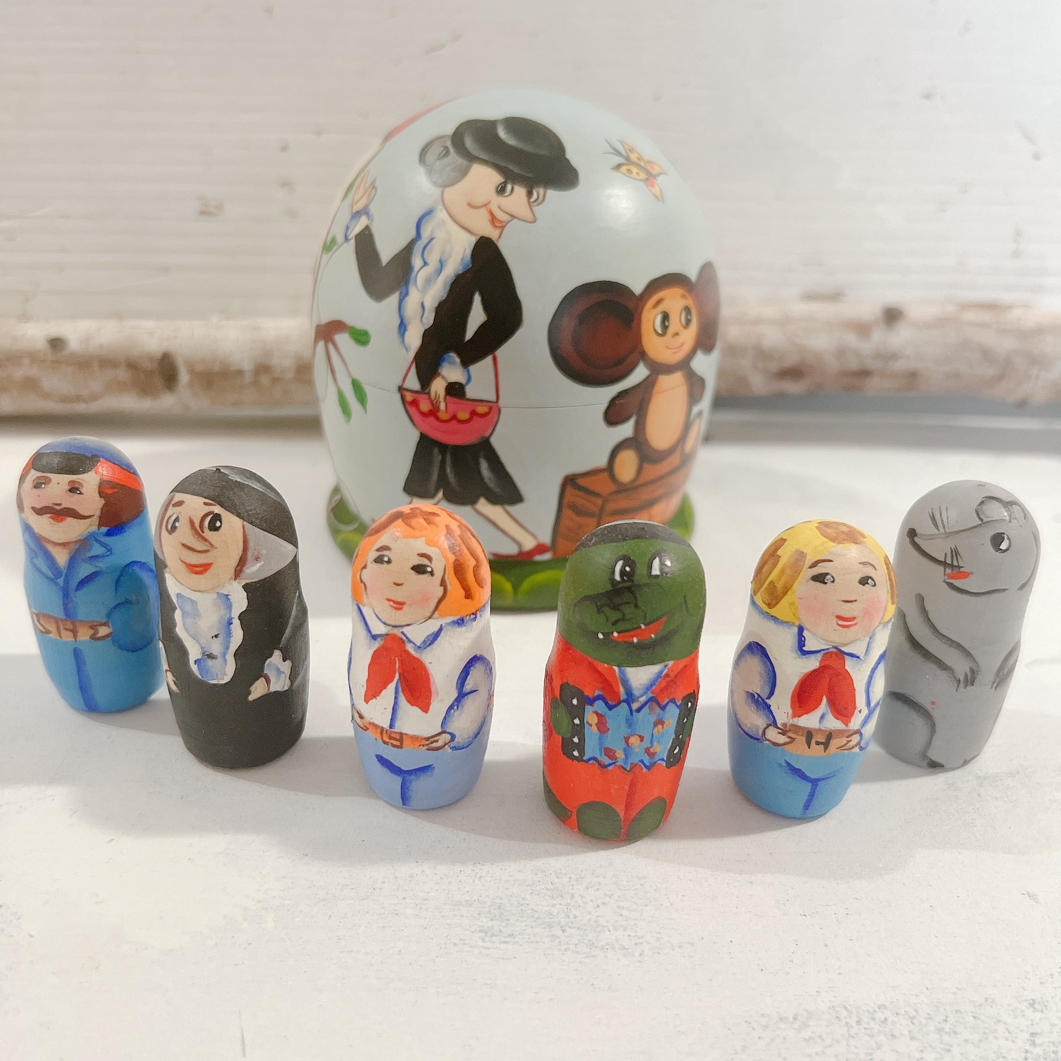 チェブラーシカの映画の一こまを切り取ったキュートなドーム型マトリョーシカです。