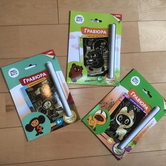 黒い部分にグレイでロシアの人気キャラクターが書かれていて、それをなぞって行くというもの