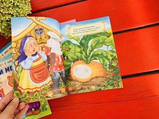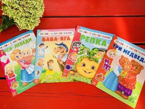ロシア語の可愛いシールブック 「ロシア民話 4冊セット」がちょうはくちょう・バーバヤガ・大きなかぶ・3ひきのくま・