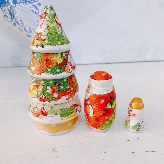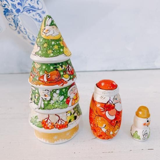 3P イリーナ作 クリスマスツリーマトリョーシカA 台座ゴールド 12cm