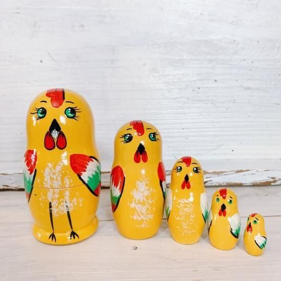 5p 動物さんマトリョーシカ 「黄色いにわとり」 10-11cm. MT010
