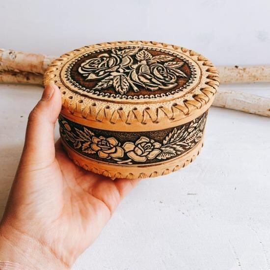 白樺細工は各国で行われいますが、型押しの技巧はロシアだけに思えます。