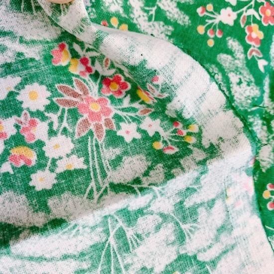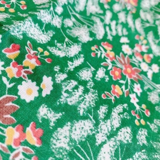 :1: 幅78cm×50cmカット 『緑系 木や花』ロシアの昔の布 デッドストック ソビエトデザイン