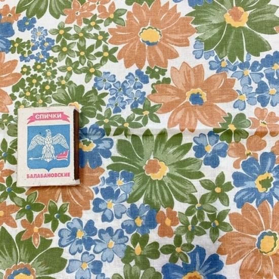 :6: 幅77cm×50cmカット 『茶系 大柄フラワー』ロシアの昔の布 デッドストック ソビエトデザイン