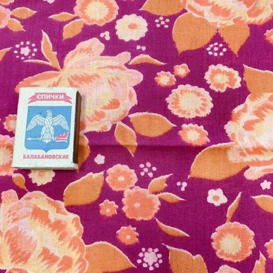 :7: 幅78cm×50cmカット 『紫系 大柄フラワー』ロシアの昔の布 デッドストック ソビエトデザイン