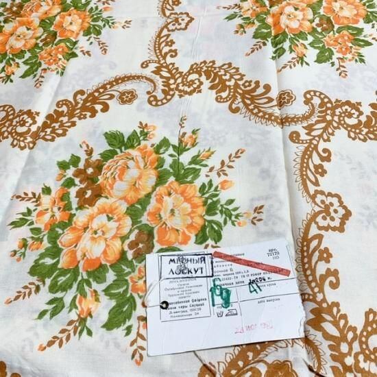 :21: 幅100cm×50cmカット 『クリーム地 大柄』ロシアの昔の布 デッドストック ソビエトデザイン