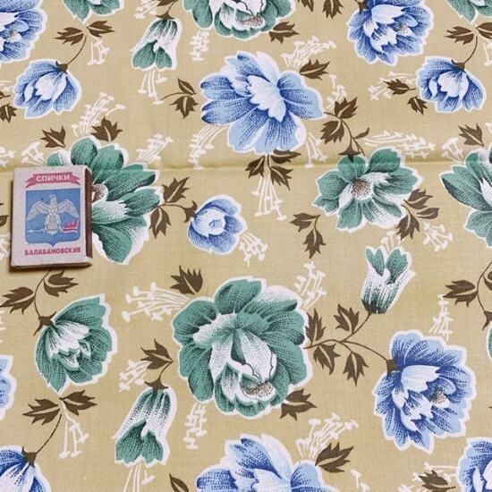 :26: 幅88cm×50cmカット 『クリーム地 大花柄』ロシアの昔の布 デッドストック ソビエトデザイン
