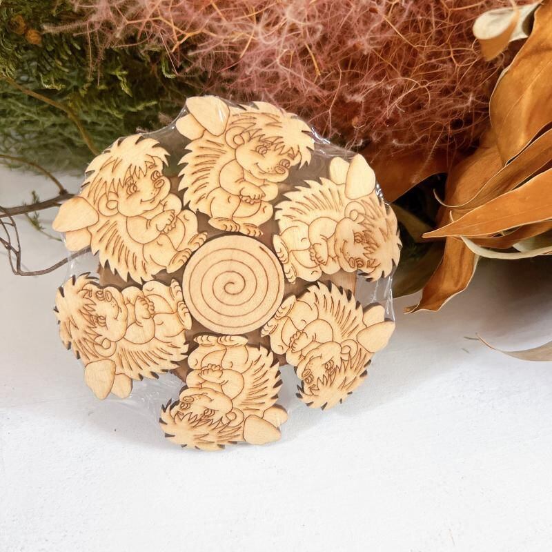 木製アロマコースター ヒノキの癒し 小 「はりねずみB」