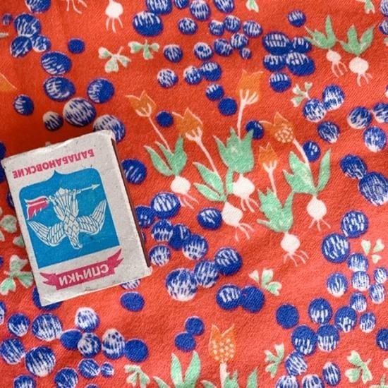 :31: 幅72cm×50cmカット 『赤地 球根』ロシアの昔の布 デッドストック ソビエトデザイン