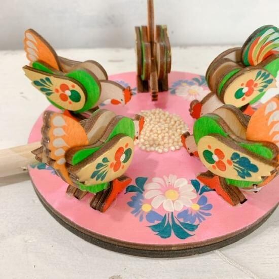 貼り重ねの美しい木工おもちゃ 「えさをついばむにわとり」」 D