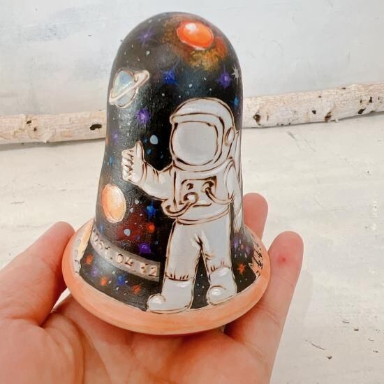 イリーナ・ヴァトゥルーシキナ作 ウッドバーニング おきあがりこぼし 「ガガーリン人類初宇宙飛行50年記念イヤー・記念作品 A」 約9.5cm