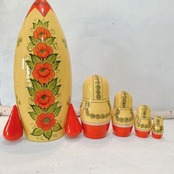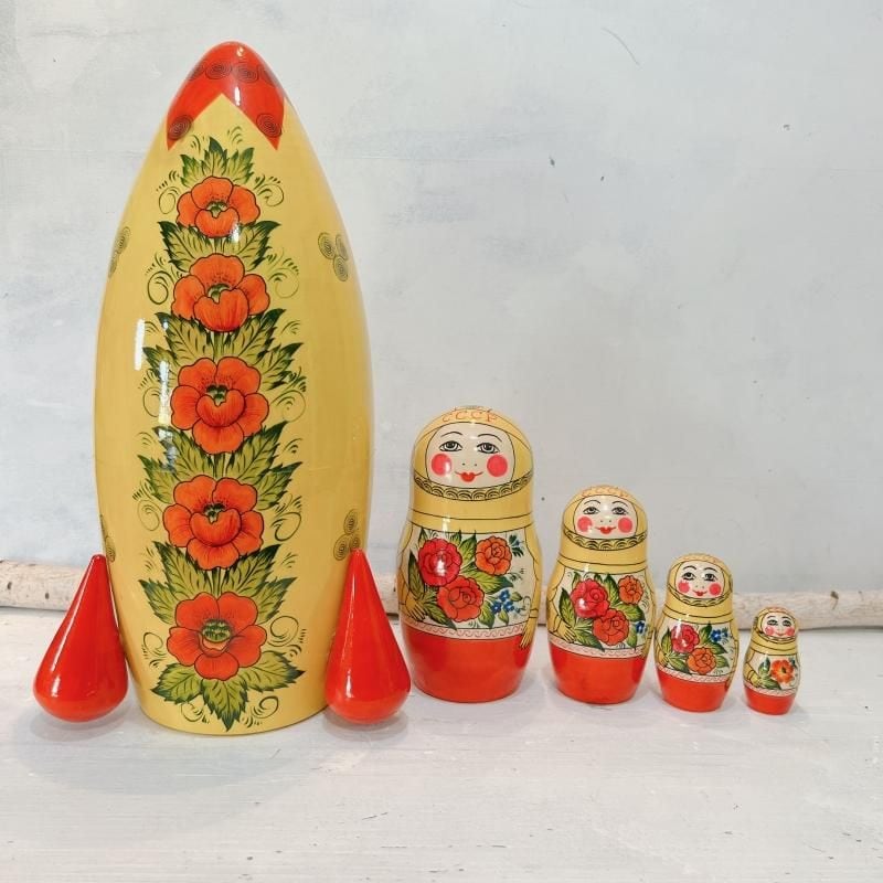 特大5pセミョーノフ産 タマラ作 マトリョーシカ 「宇宙船 アストロノーズ」 35cm