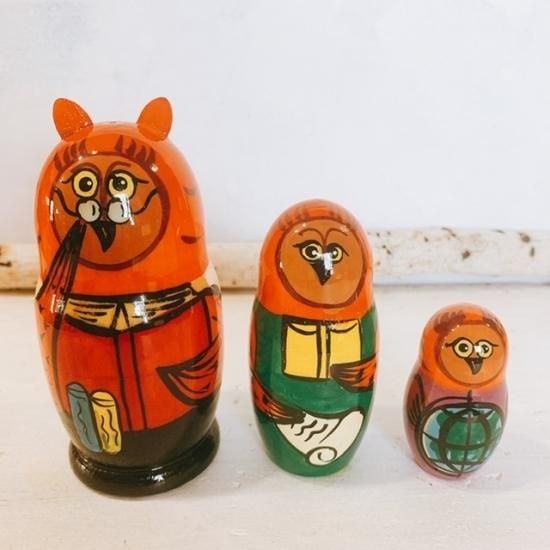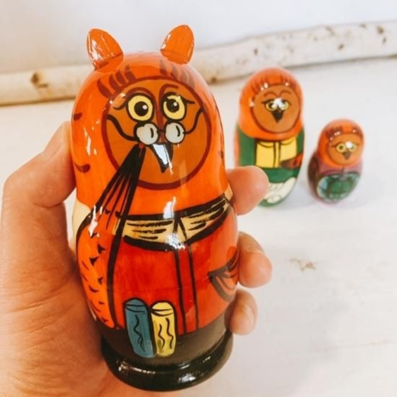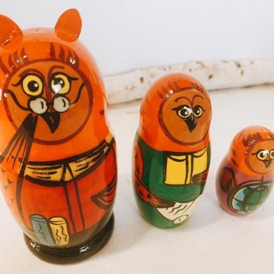 3p 動物さんマトリョーシカ 「ふくろう先生」 11.5cm. MT130