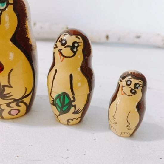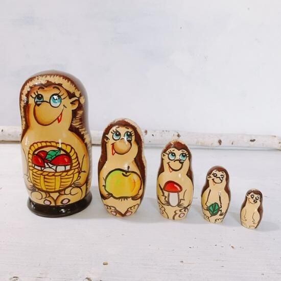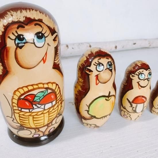 ★SALE★5p 動物さんマトリョーシカ 「はりねずみ・きのこのバスケット」 16.5cm MT119