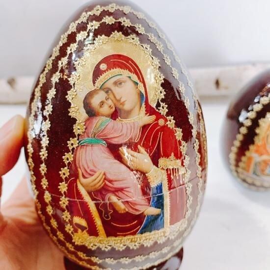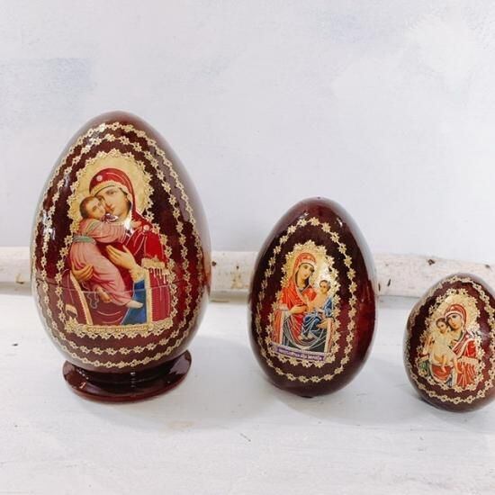 3ピース ロシア正教・イコンの卵型マトリョーシカ [Vladimir Mother of God] 12.5cm