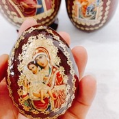 こちらのマトリョーシカは、イコンのプリント貼られ、装飾、仕上げをしてあります。