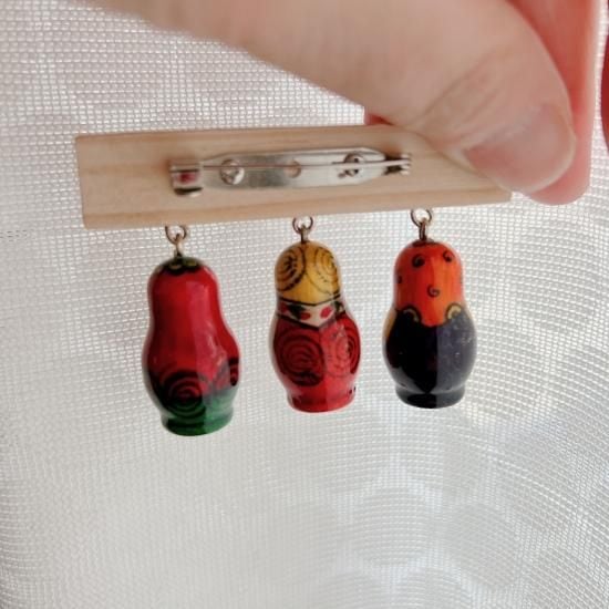 セミョーノフ産 タマラ作 ゆらゆらブローチ「かしまし三人娘」