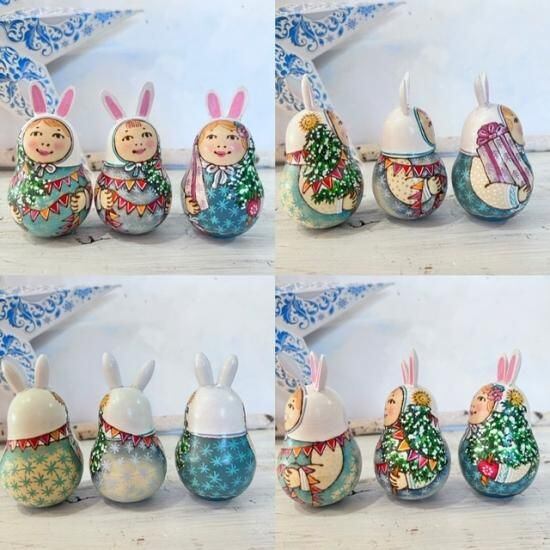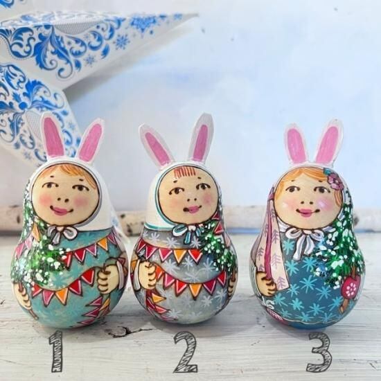 タチアナドゥビニッチ作 ウッドバーニング おきあがりこぼし ウサギ耳3種[ツリー. ZZ071
