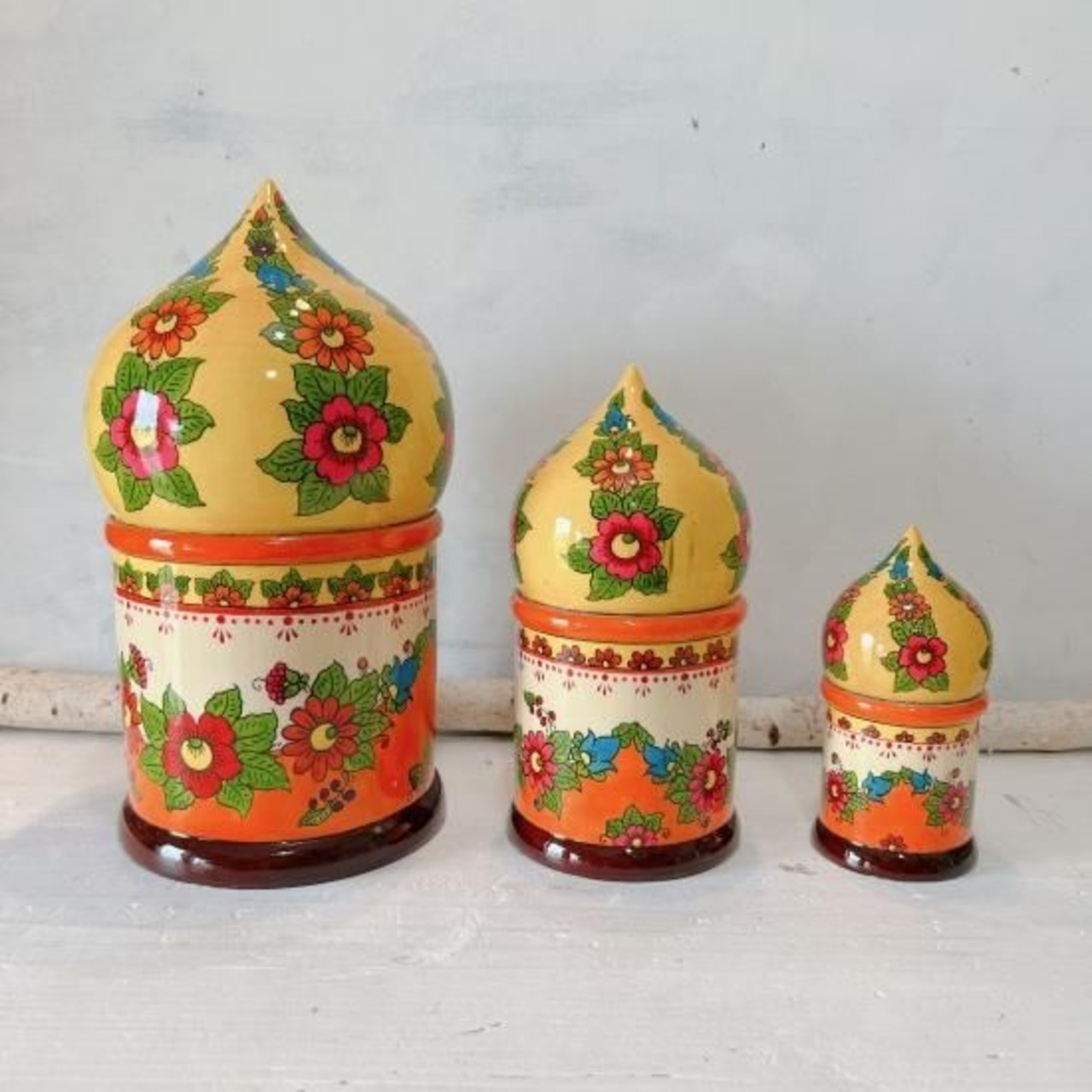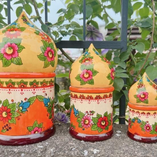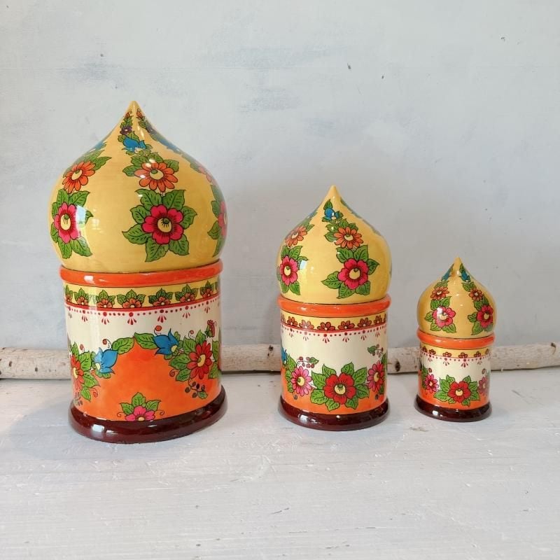 この「教会マトリョーシカ」は、そのロシア正教会の美しい屋根の形をモチーフにしています。