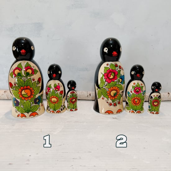 3Pセミョーノフ産 タマラ作 「ペンギンのマトリョーシカ」約19cm