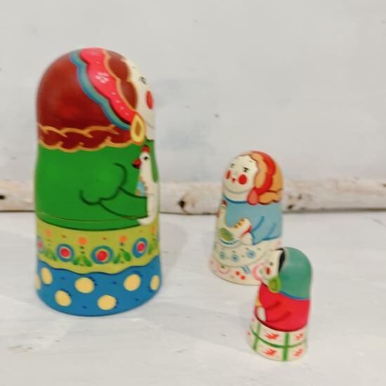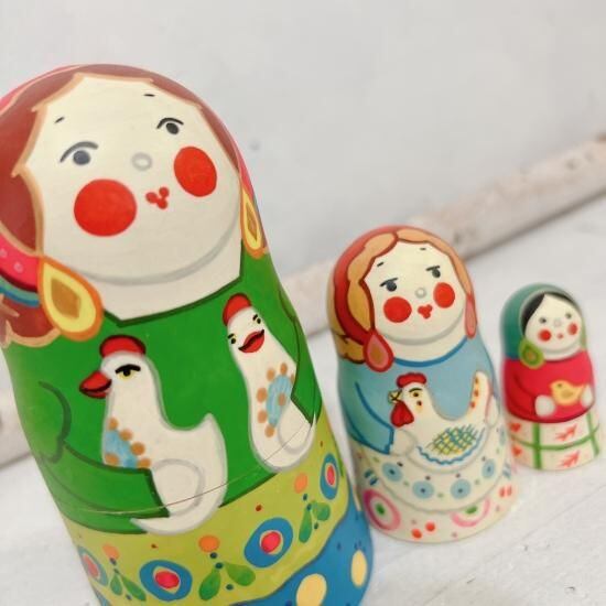 3P リューバ作 ディムコボスタイル マトリョーシカ 「2羽のニワトリ」 12.5cm