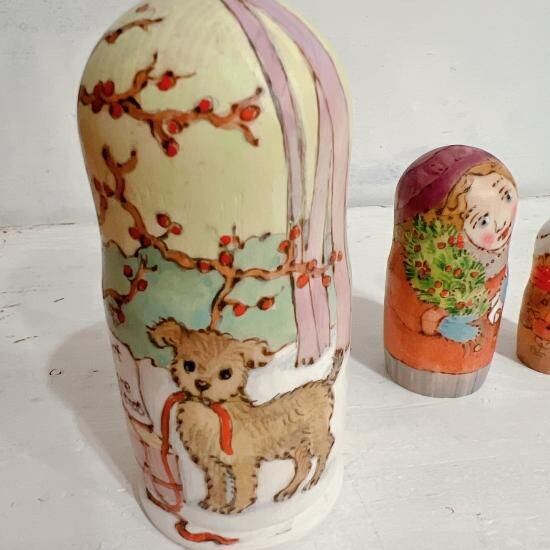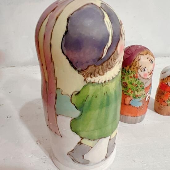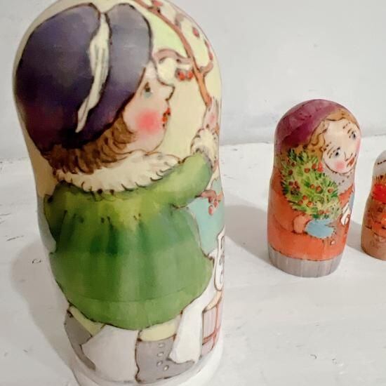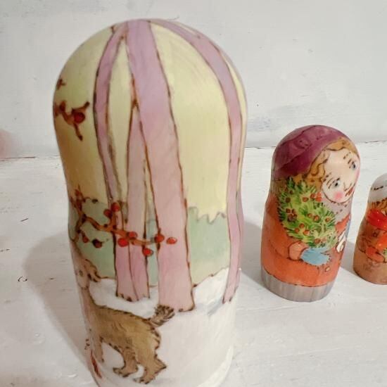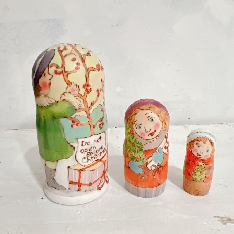 3P バローニナ・マリヤ作 ウッドバーニングマトリョーシカ 「クリスマスまで開けないでね」 11.8cm