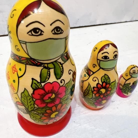 コロナウイルス収束を祈るのはロシアのマトリョーシカ作家さん達も一緒。