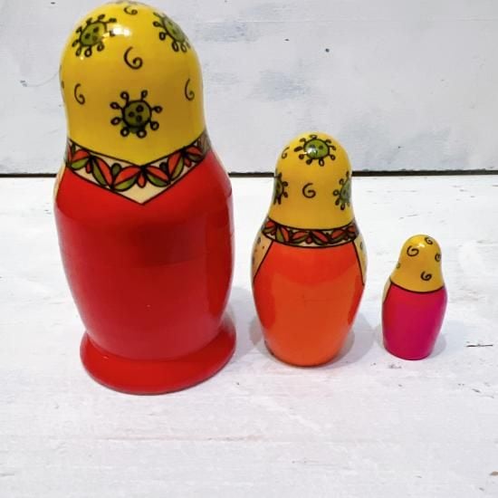 [SALE] 3pセミョーノフ産 タマラ作 マトリョーシカ 「コロナ退散 マスクマトリョーシカ 3」MT045