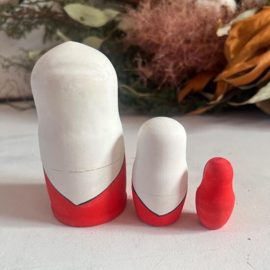 手作り 塗り絵感覚の3pマトリョーシカ 赤×白 トールペイント素材