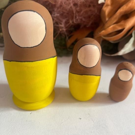 手作り 塗り絵感覚の3pマトリョーシカ 黄色×茶 トールペイント素材