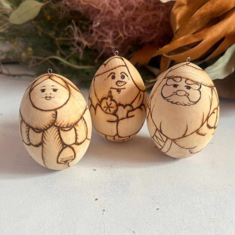 白木 手作り ウッドバーニング 3個セットのクリスマスオーナメント エッグ