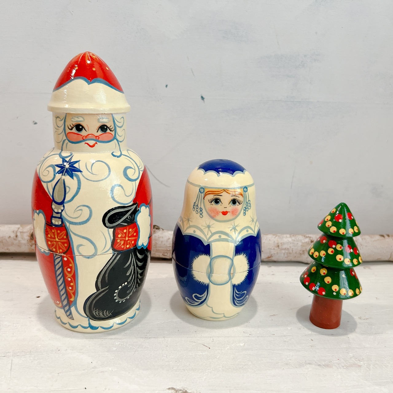 SALE. 3p:ノリンスクマトリョーシカ「クリスマス ロケット型」18cm