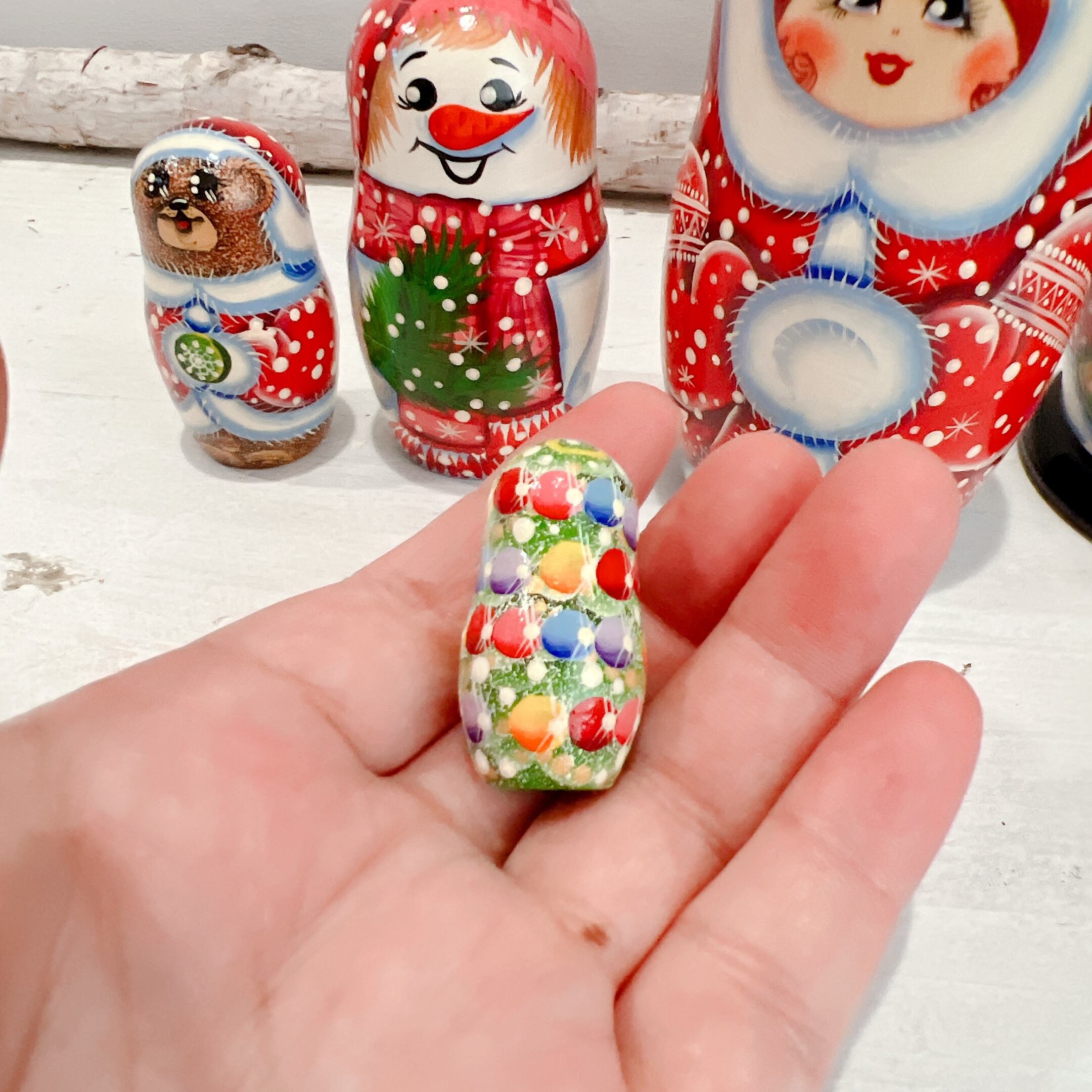 5p マトリョーシカ グラズーノワ作「サンタと冬の仲間たち 」16cm. MT307