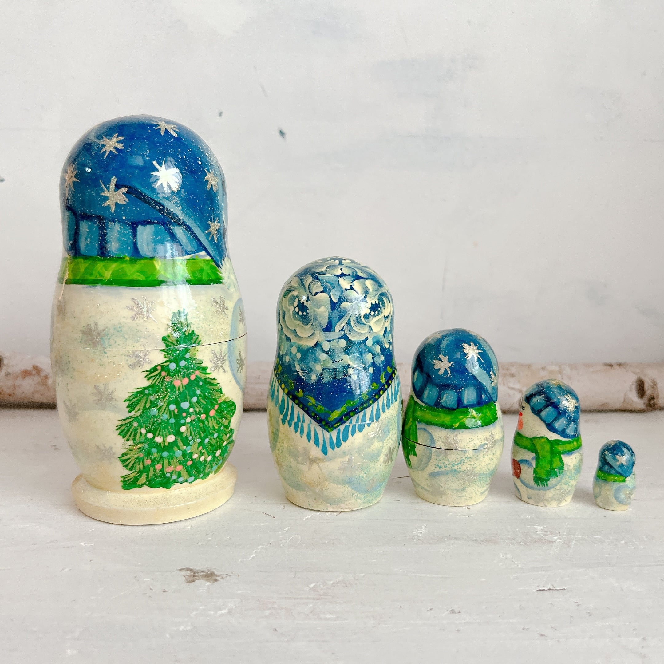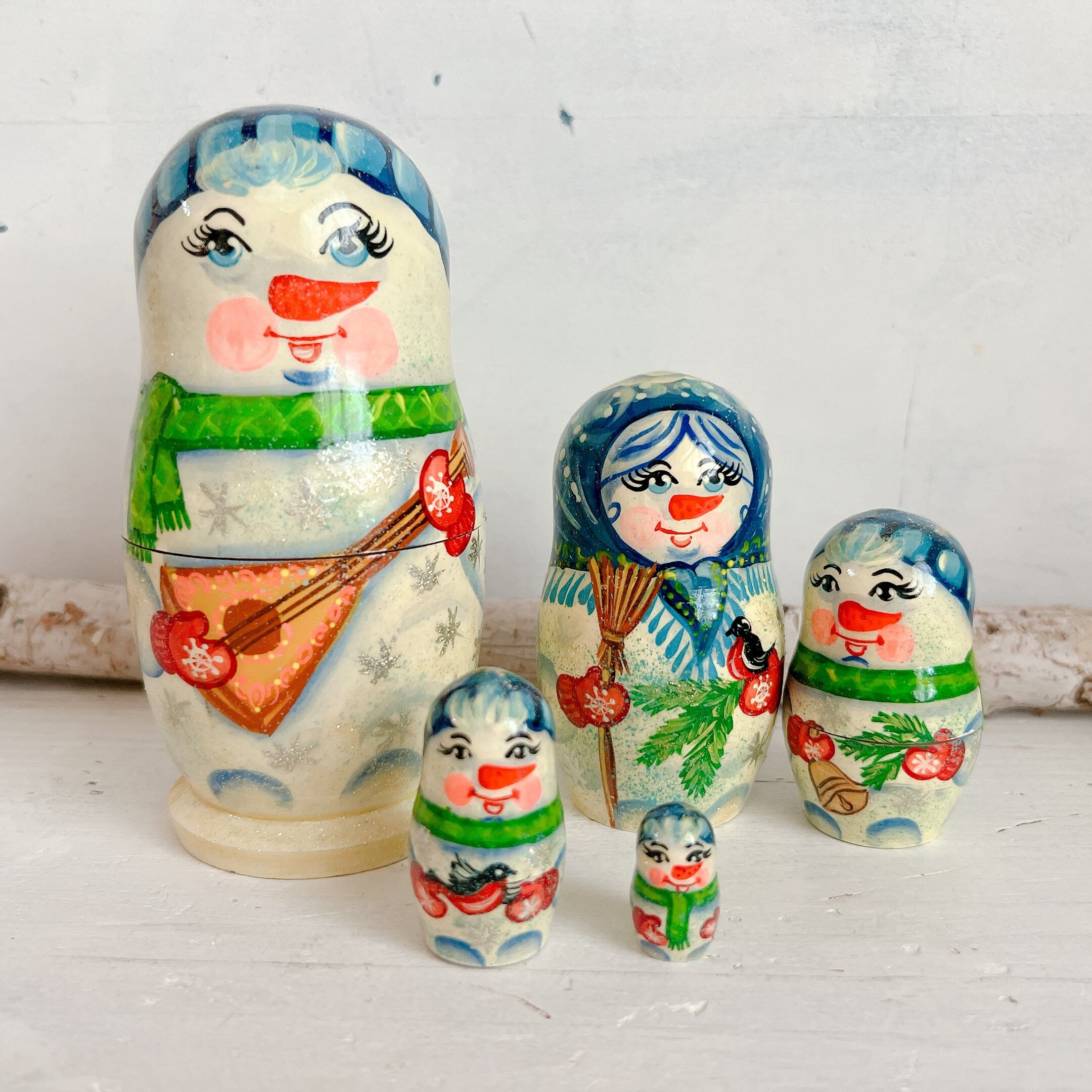 5p マトリョーシカ ナターリア作「雪だるまファミリー」14cm
