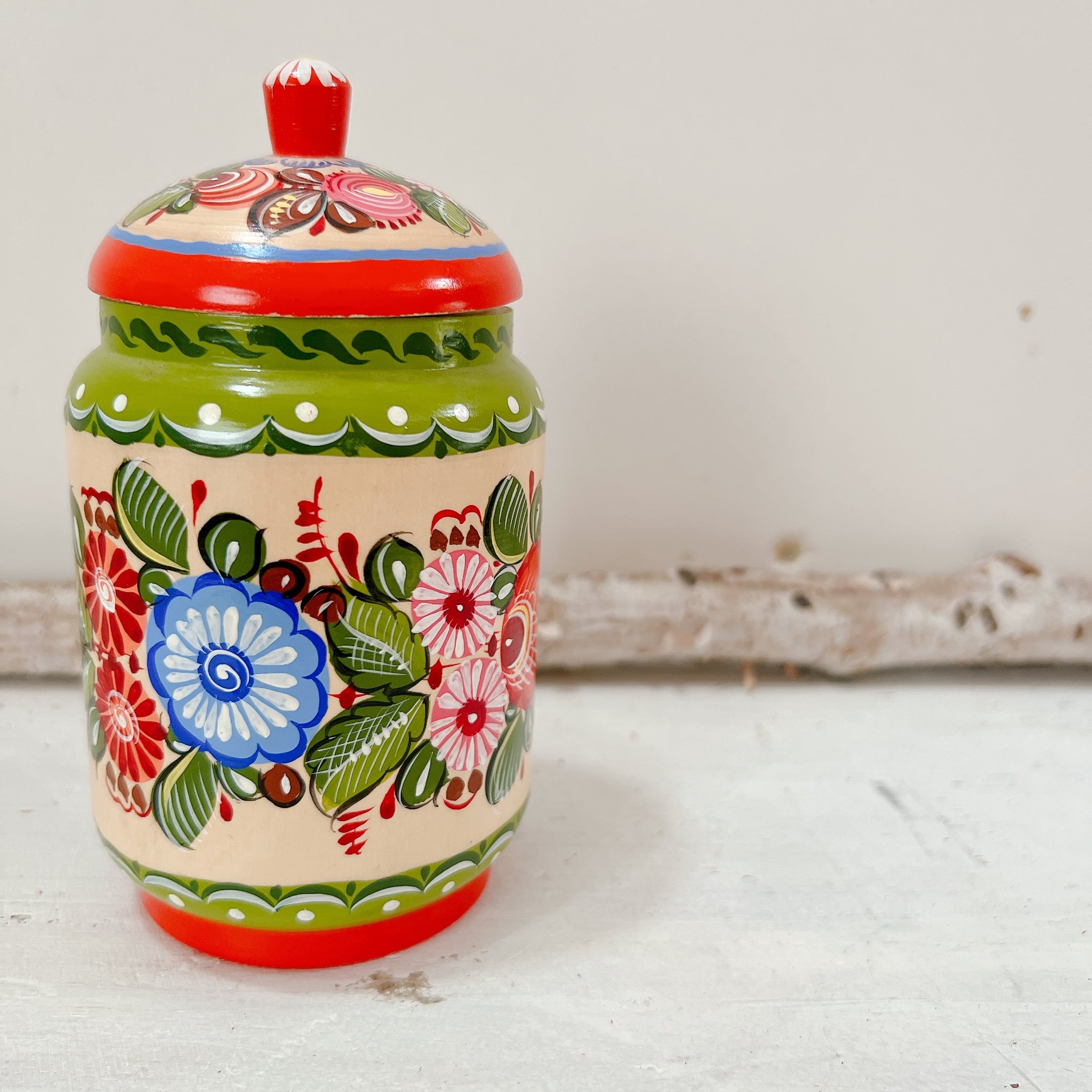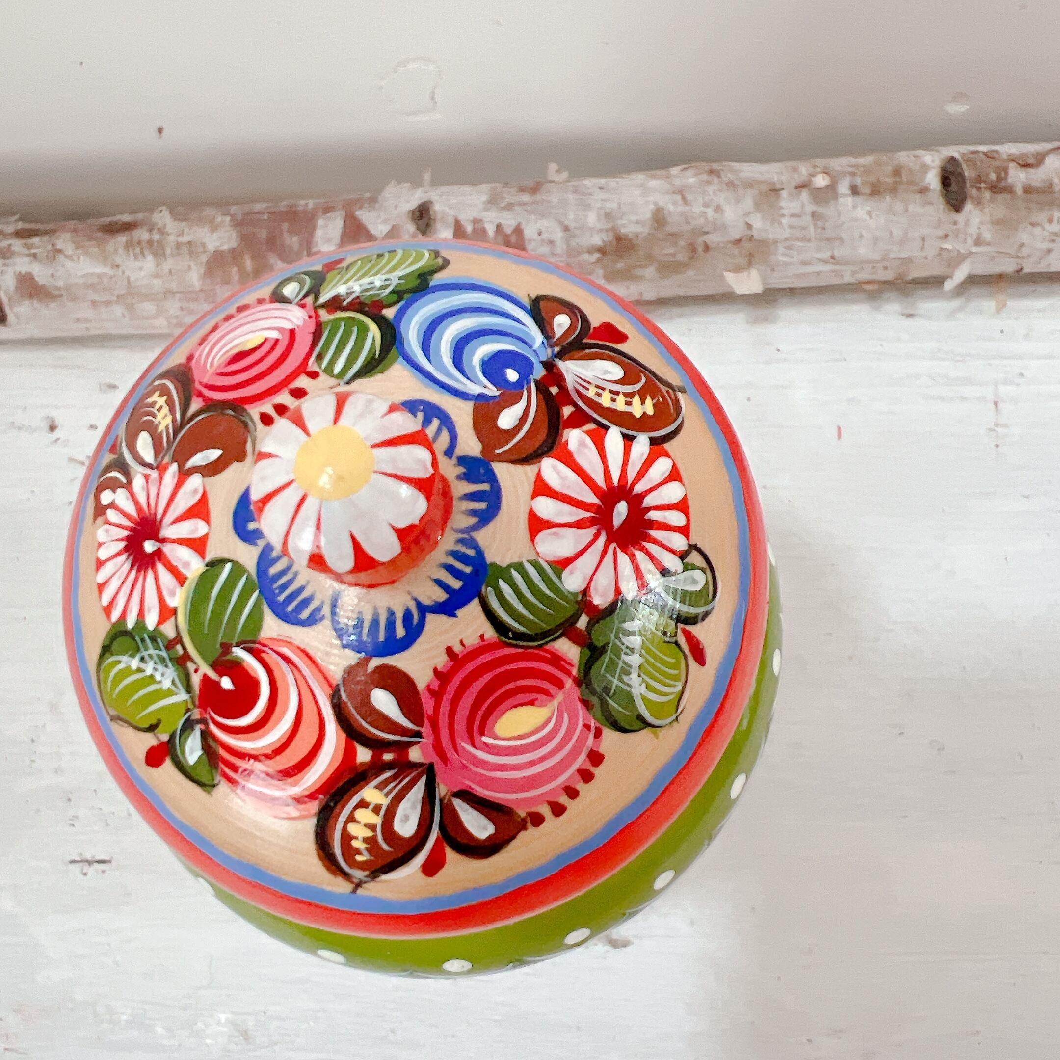 ロシア伝統工芸「ゴロジェツ塗り」の蓋付き容器です。