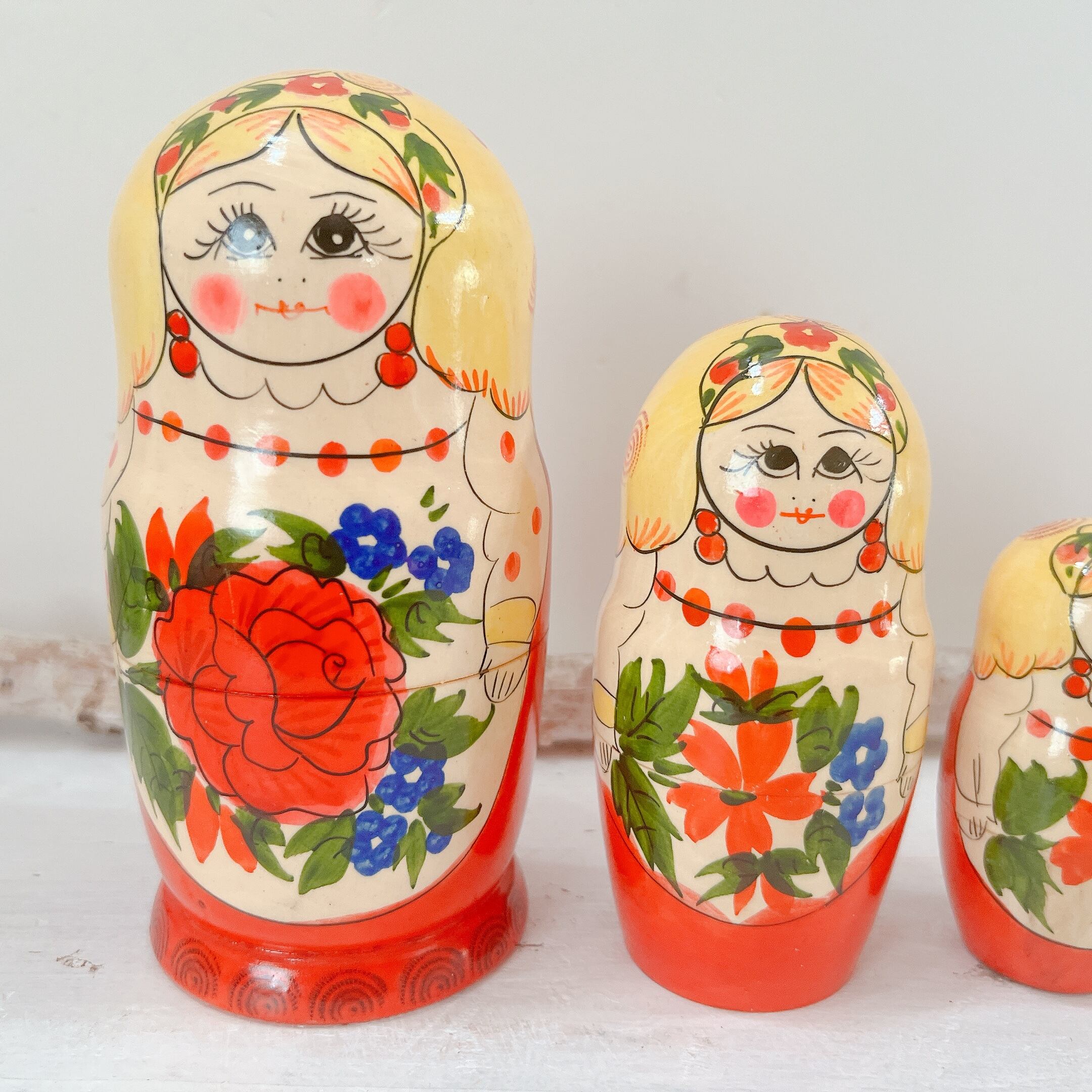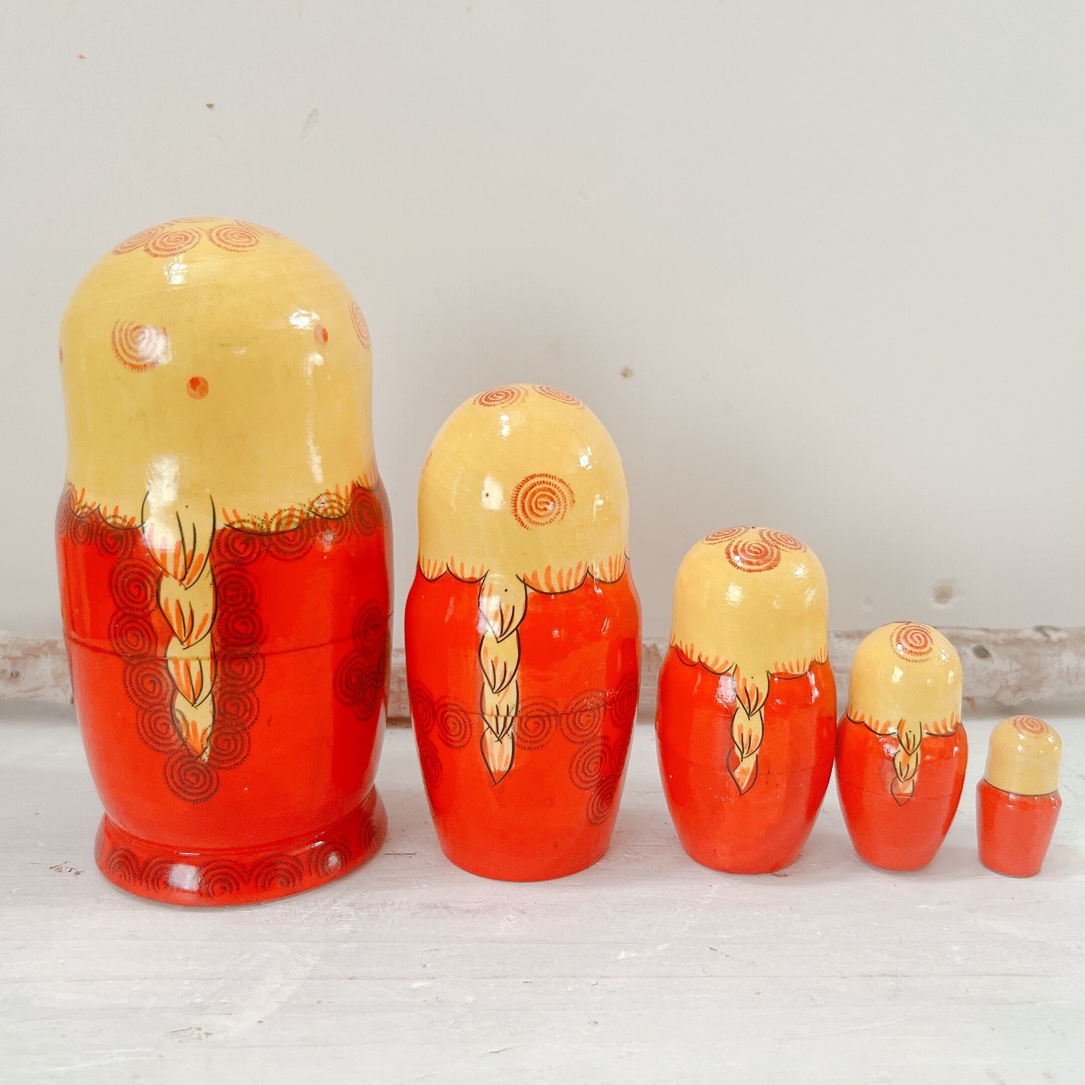 特に後ろ髪の三つ編みが描かれているのは、伝統的なスタイルを踏襲した証拠で、近年のシンプル化されたマトリョーシカとは一線を画しています。