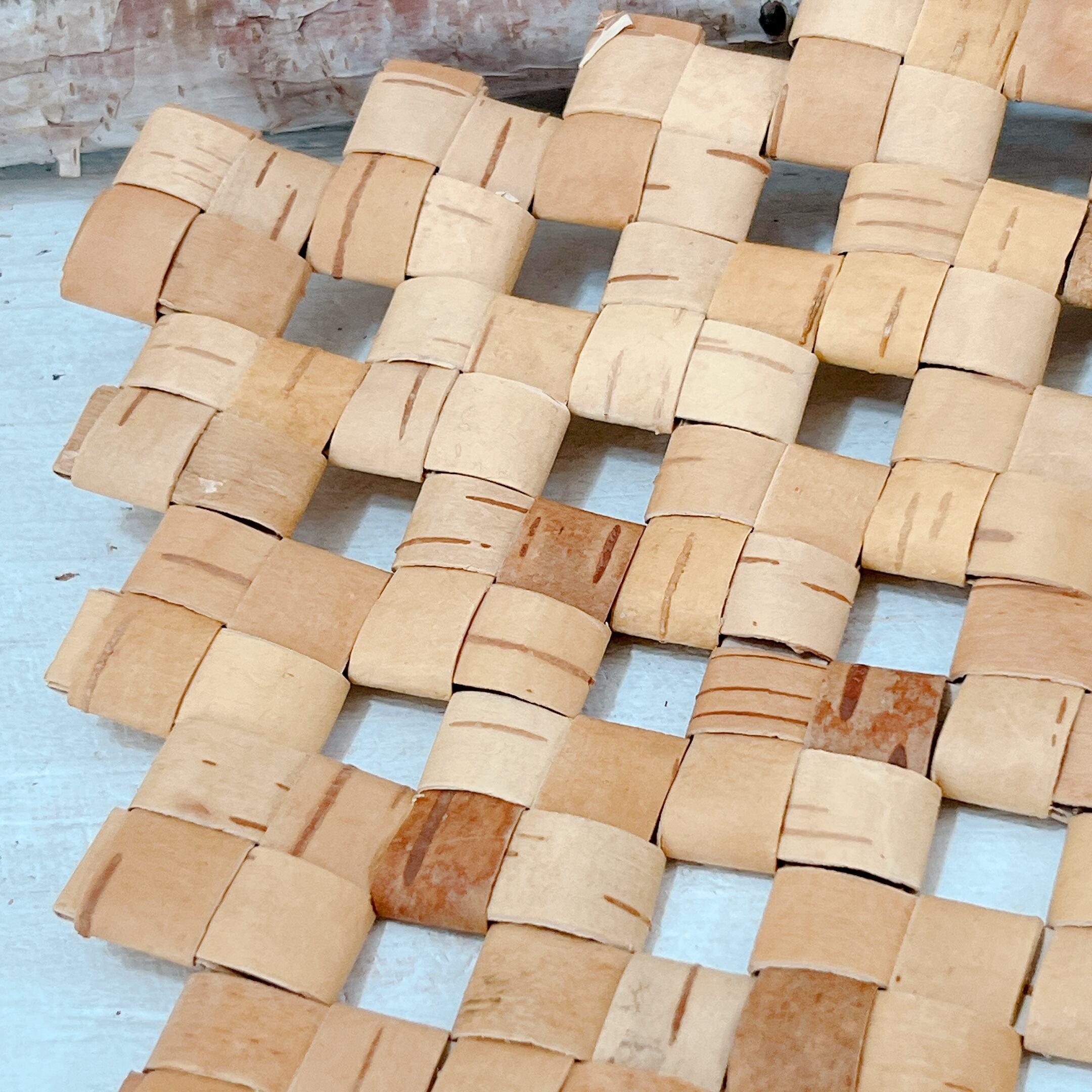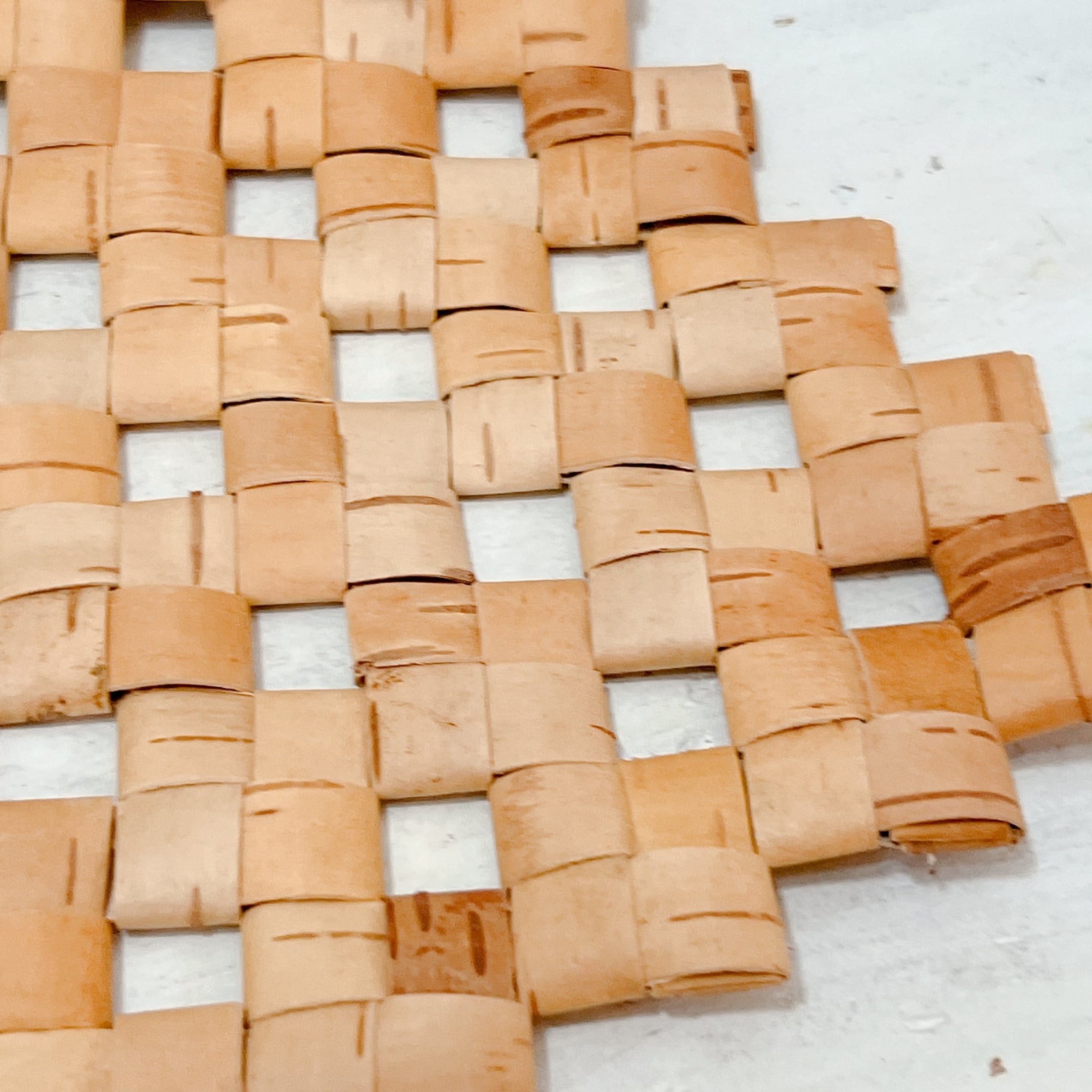 天然の白樺樹皮を細く裁断し、一つひとつ丁寧に編み込んだ作品で、素朴で温かみのある仕上がりが魅力です。